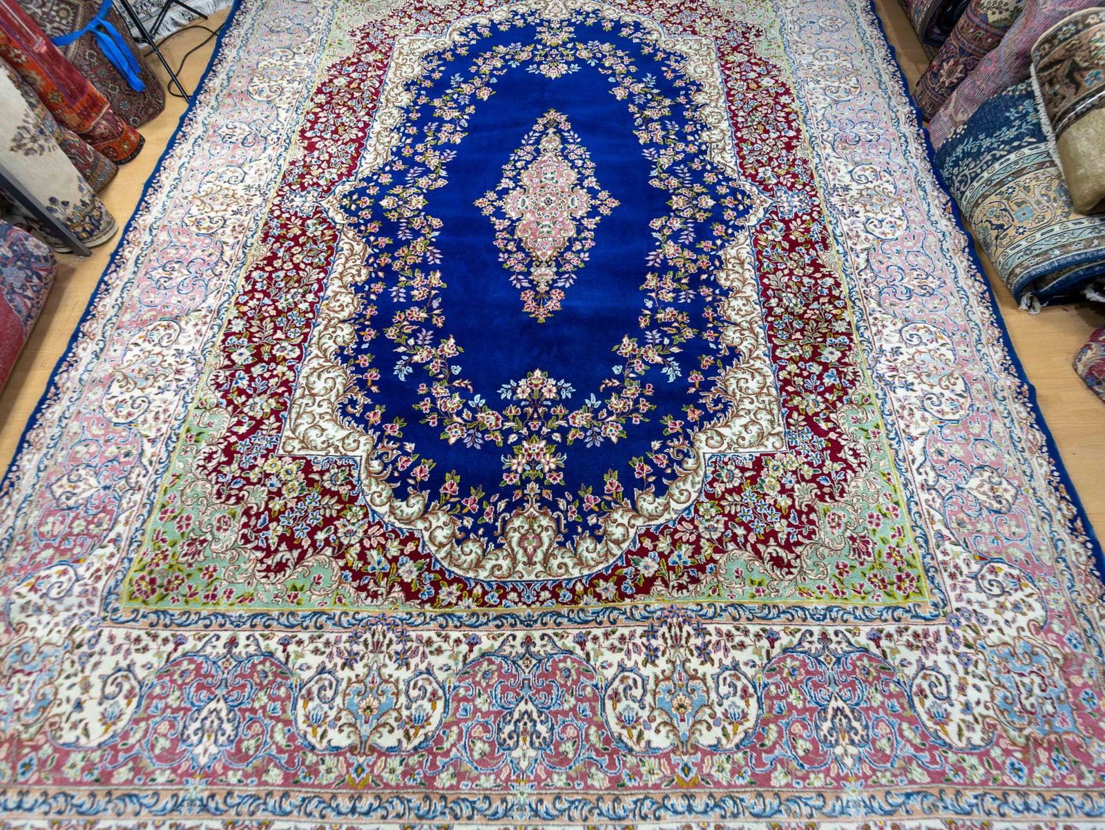 W1(#301) ca. 400x300cm Unikat seltener handgeknüpfter Perserteppich Kerman Kirman 360.000/qm Teppich blau (Persien) Rarität