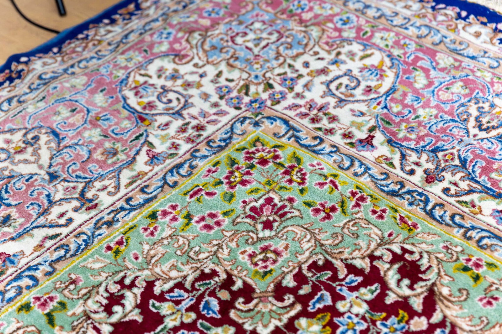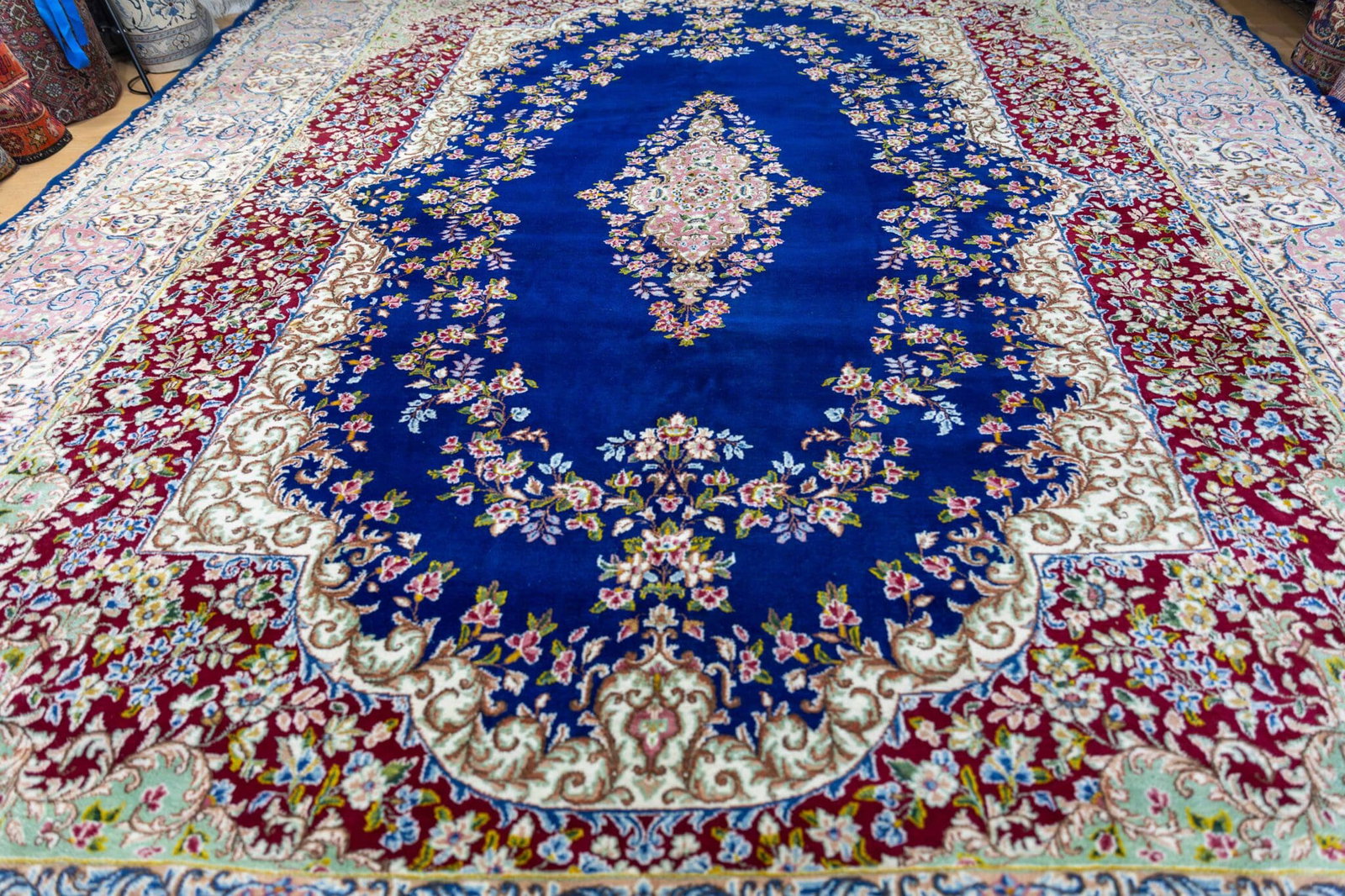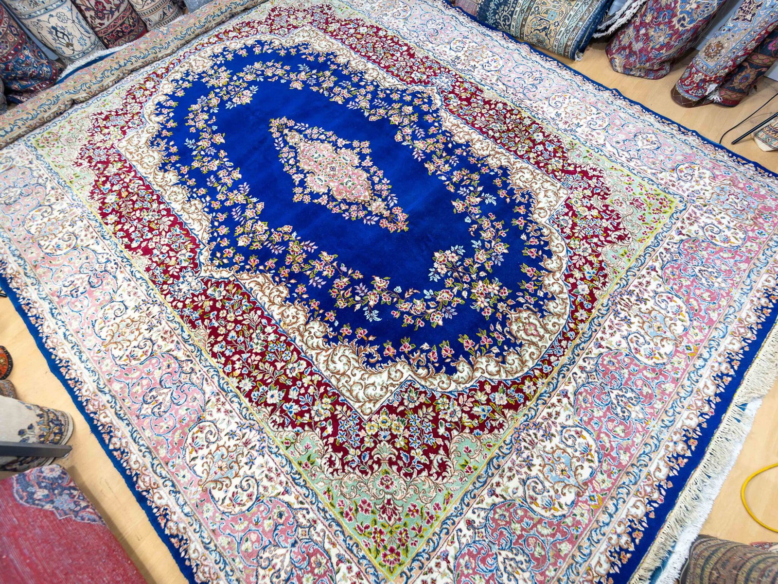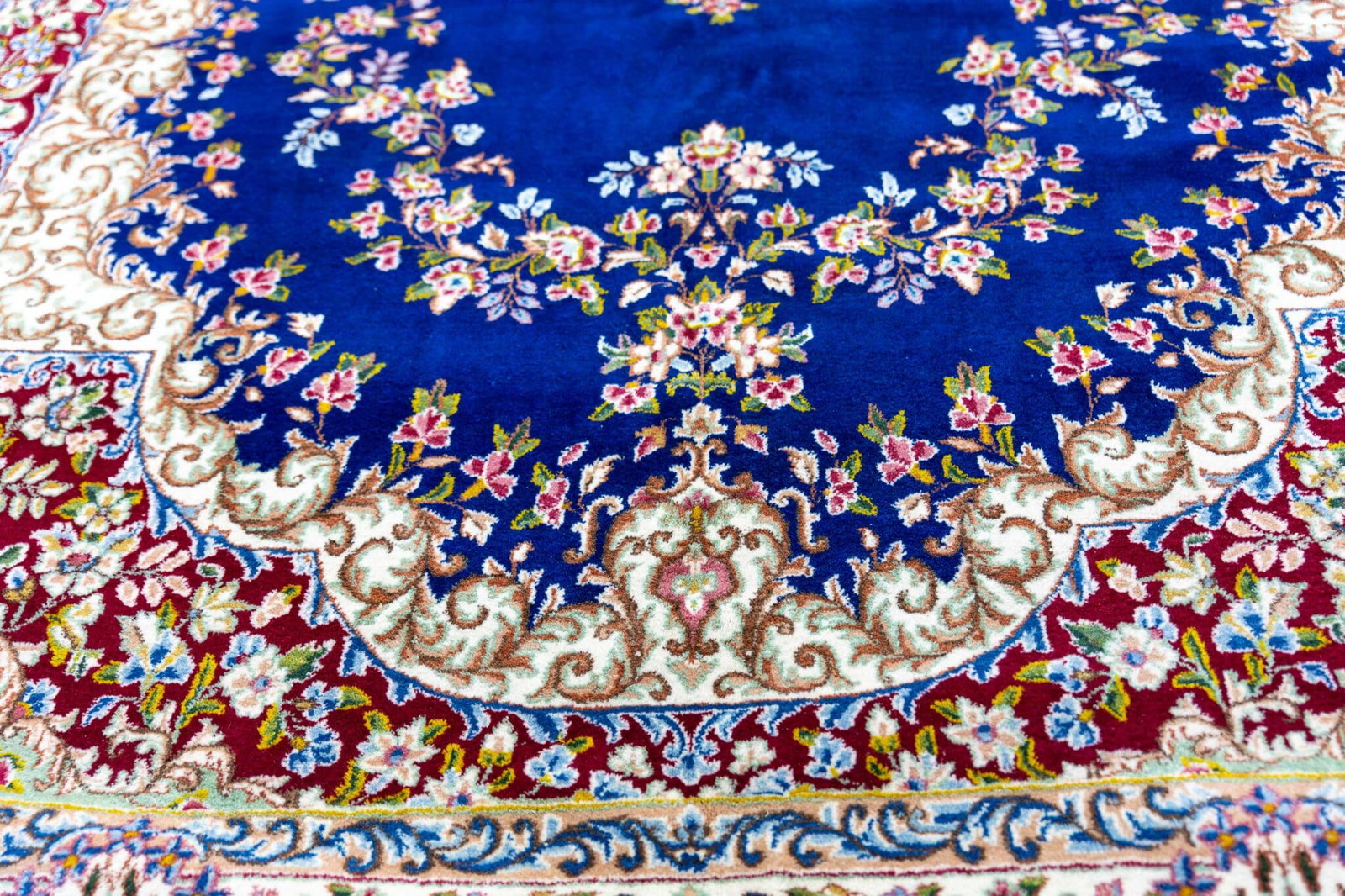 8764$Ursprünglicher Preis war: 8764$5843$Aktueller Preis ist: 5843$Herkunft: Persien Kirman (auch Kerman) Knotendichte: ca. 360.000 Knoten/qm (42 Radj) Zustand: Neuwertig Muster: Floral mit Medaillon Material: Flor 100% Schurwolle – Kette 100% Baumwolle