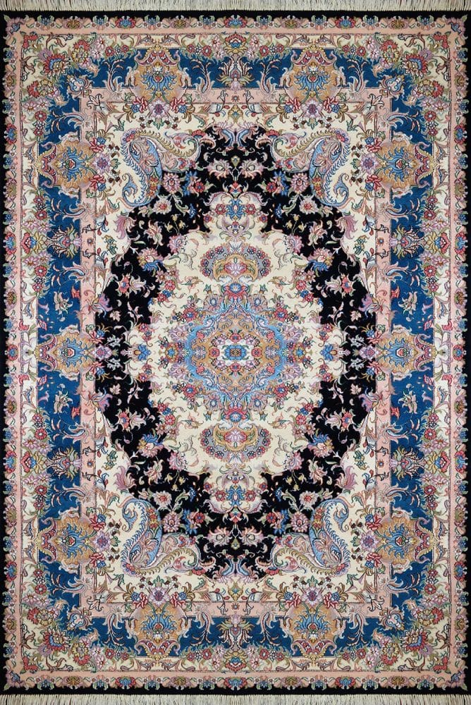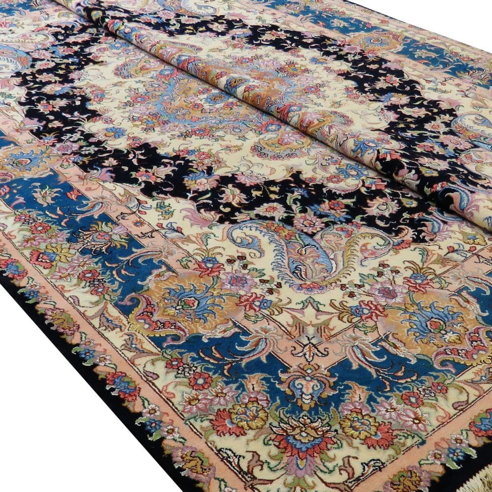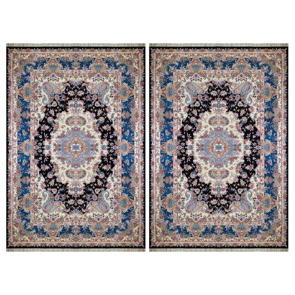 فرش دستبافت خراسان سرمهای نقشه خطیبی تبریز جفت ۶ متری گل ابریشم