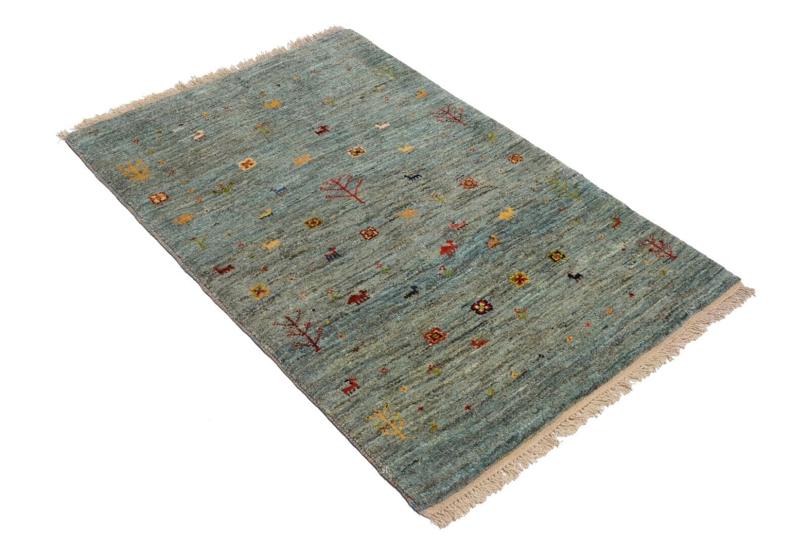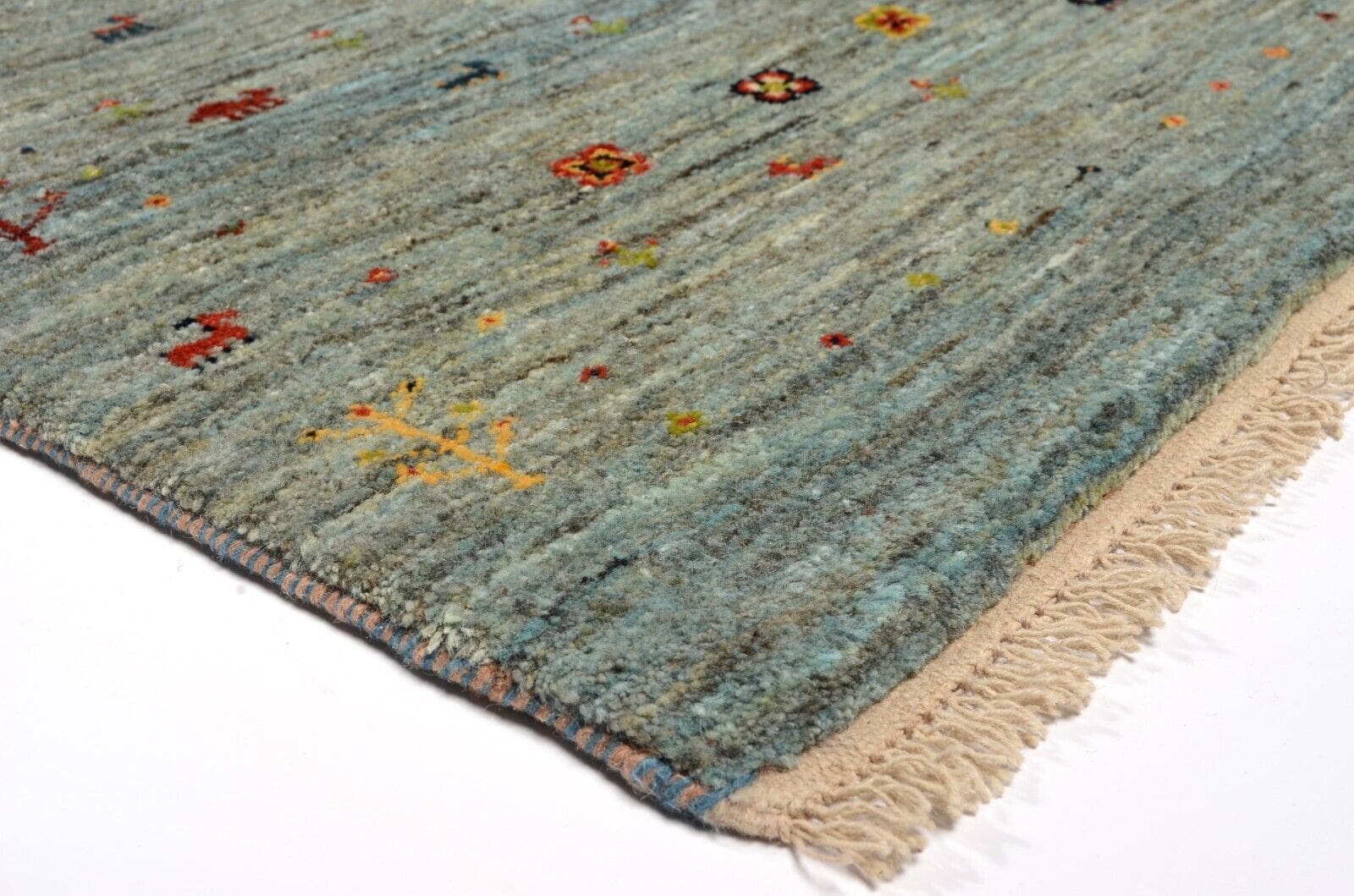Handgeknüpfter Perserteppich Loribaft | Knotendichte: 300.000 Knoten/m² | Material: 100% Schurwolle | Größe: 122 x 83 cm | Zustand: Neu, perfekt | Herkunft: Persien | Dicke: ca. 12 mm | Für Fußbodenheizung geeignet | Modernes, orientalisches Design in Blau
