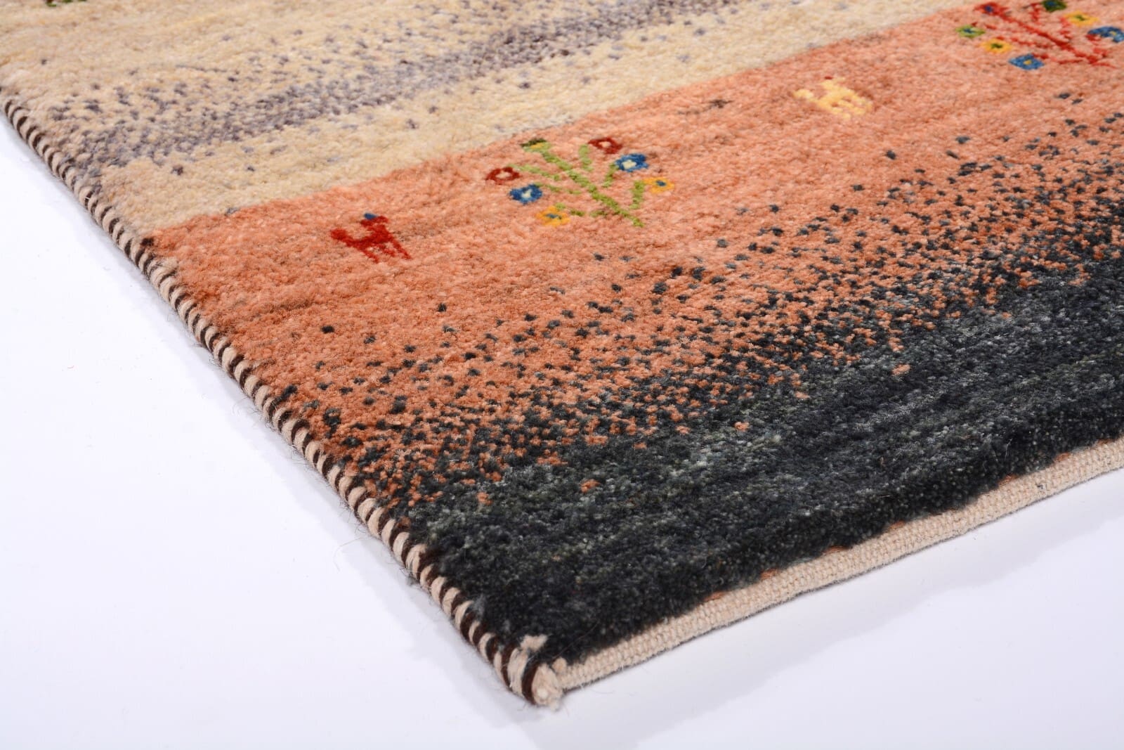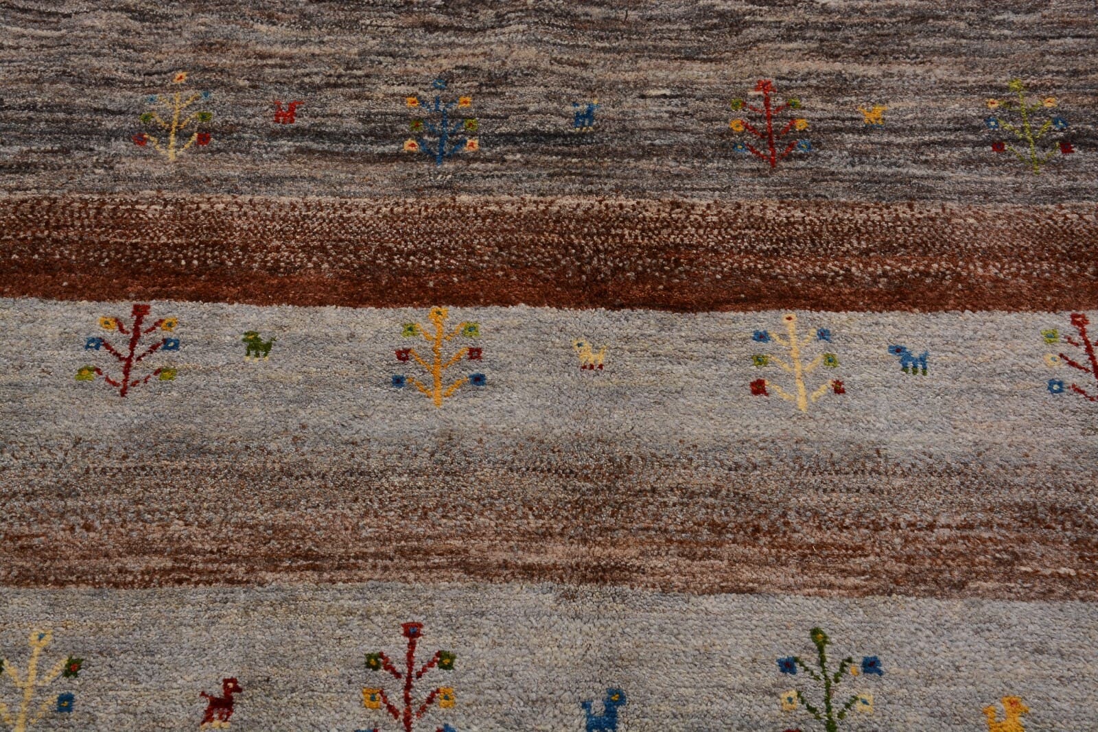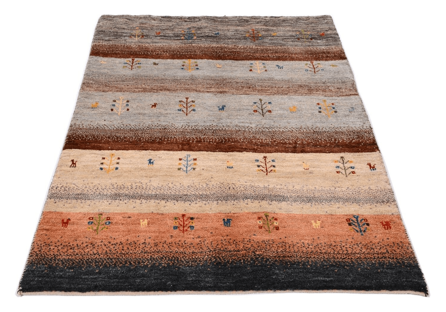 Handgeknüpfter Perserteppich Gabbeh Loribaft | Größe: 175 x 117 cm | Knotendichte: 300.000 Knoten/m² | Material: 100% Schurwolle, handgesponnen und handgefärbt | Zustand: Neu, perfekt | Herkunft: Persien | Dicke: ca. 12 mm | Für Fußbodenheizung geeignet | Modernes, gestreiftes Design | Gewicht: ca. 4 kg/m²