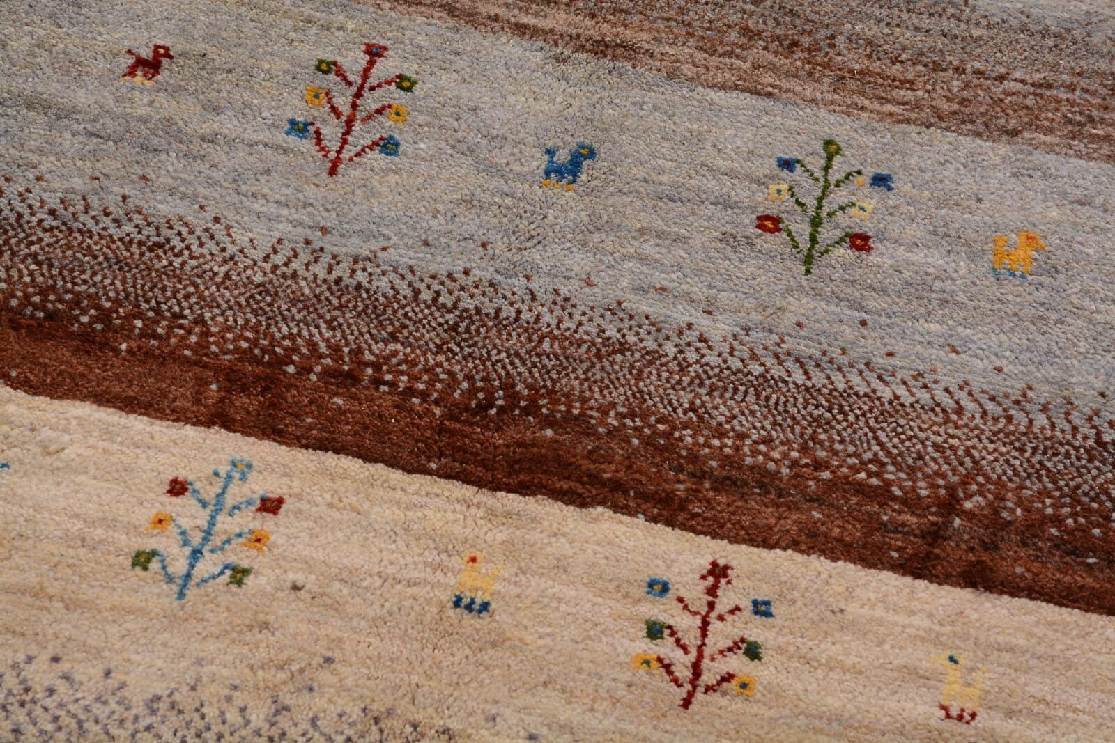 Die Farben, die in diesem Teppich verwendet werden, sind nicht nur ästhetisch ansprechend, sondern tragen auch Bedeutungen. Rot- und Blautöne sind häufig anzutreffen und stehen im Iran traditionell für Stärke und Weisheit. Die kunstvolle Kombination dieser Farben macht den Loribaft-Teppich zu einem Blickfang in jedem Raum.