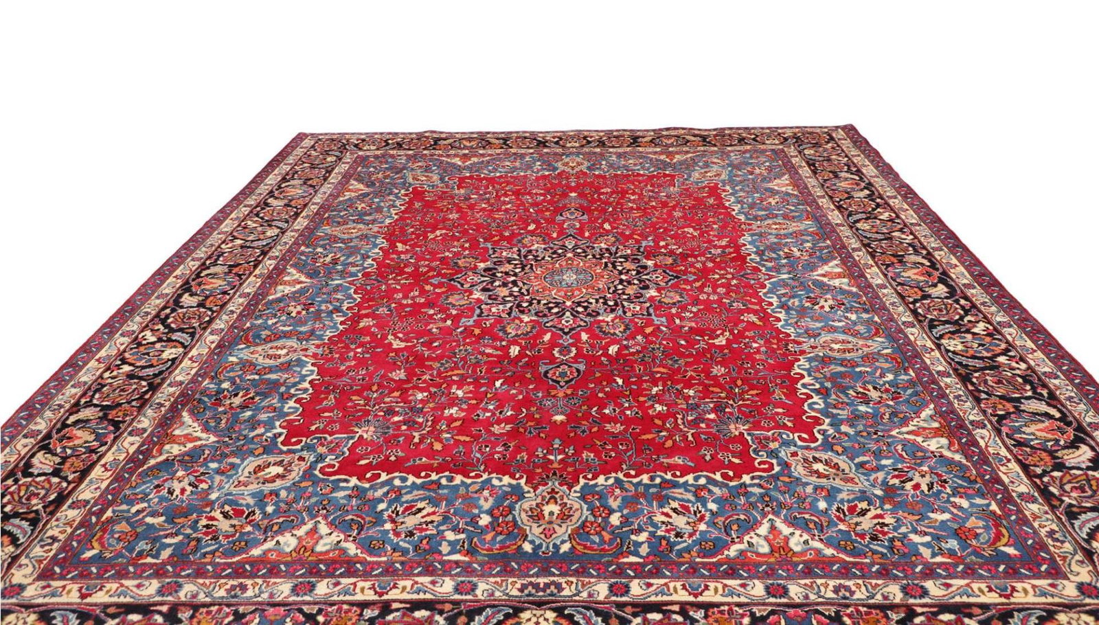 Ein Mashad-Teppich wird traditionell von Hand geknüpft, wobei jeder Teppich ein Unikat ist. Die Kunst des Knüpfens erfordert viel Können und Geduld, was sich in der hohen Knotendichte und der Detailgenauigkeit der Muster zeigt.