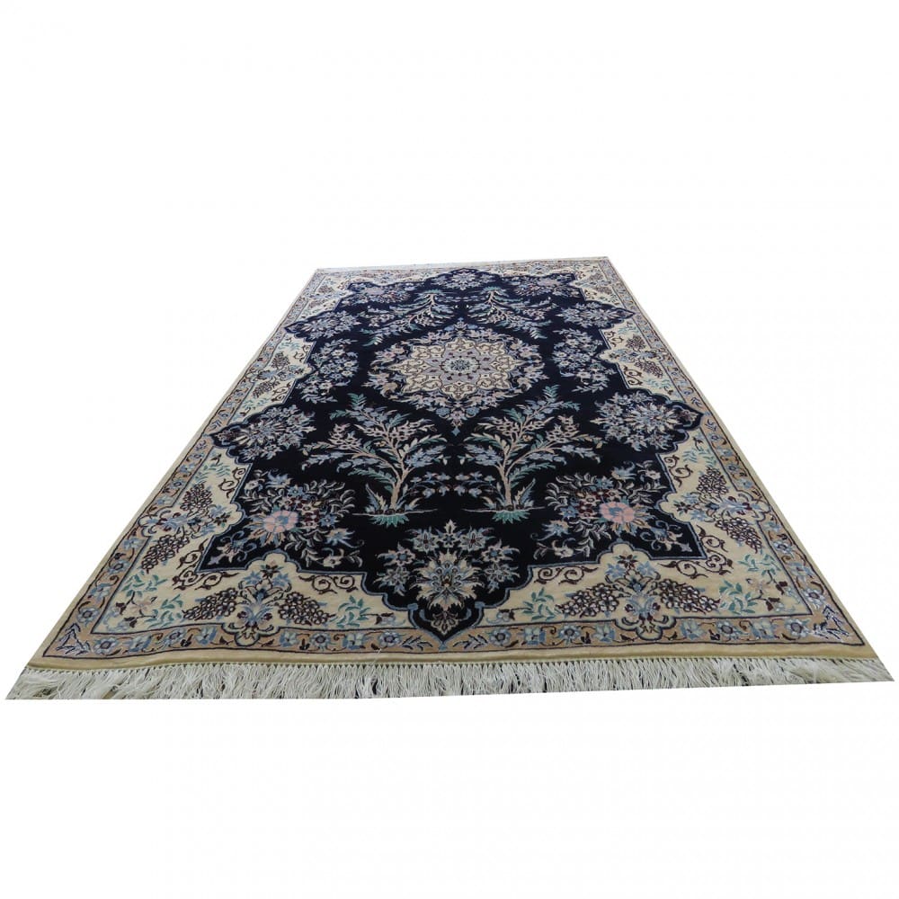 Handgeknüpfter Nain Orientteppich | Knotendichte: 6La 60 Raj (ca. 816.000 / m²) | Material: Seide & Wolle | Größe: 183 x 118 cm | Herkunft: Nain | Farbe: dunkelblau