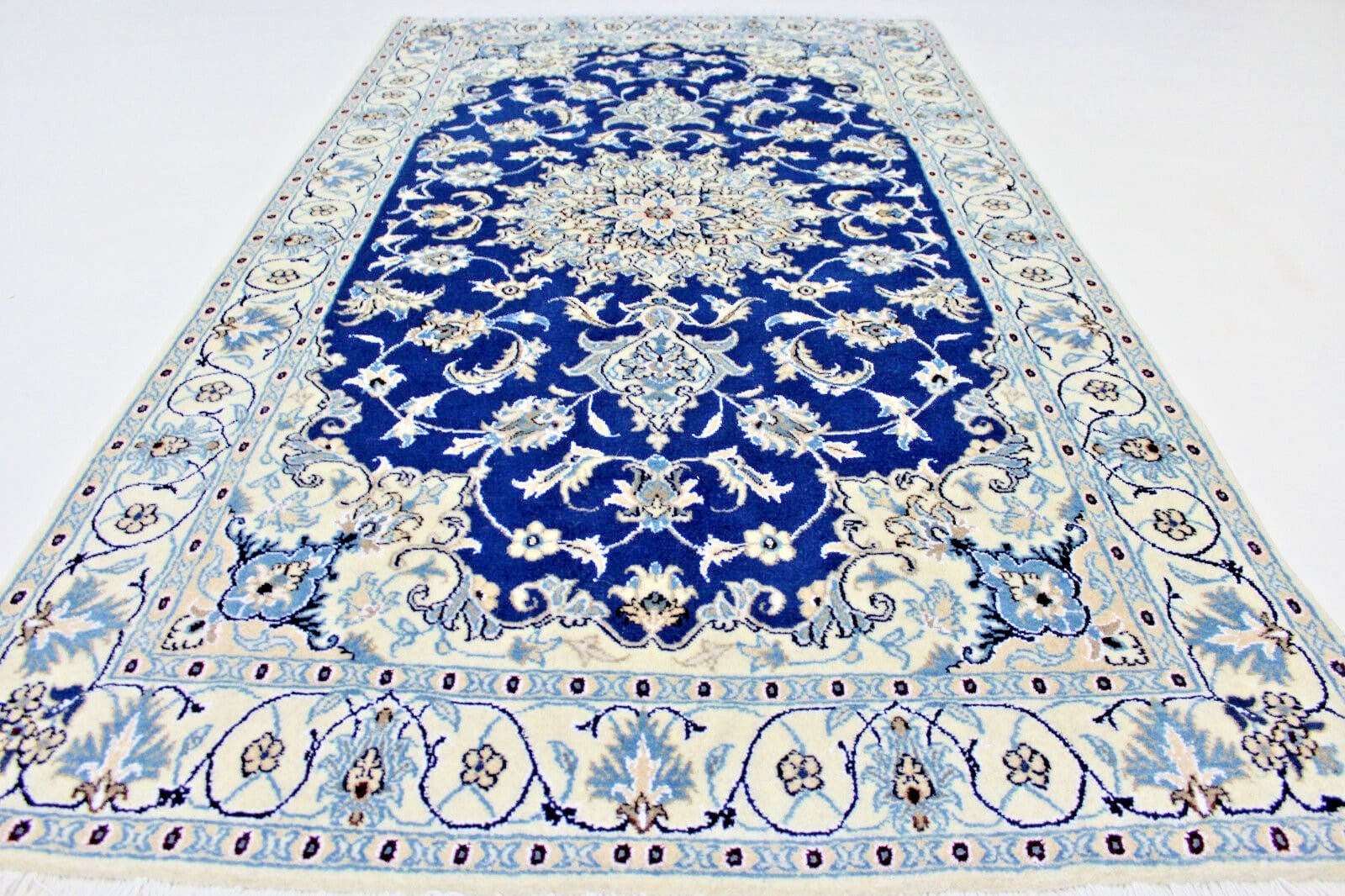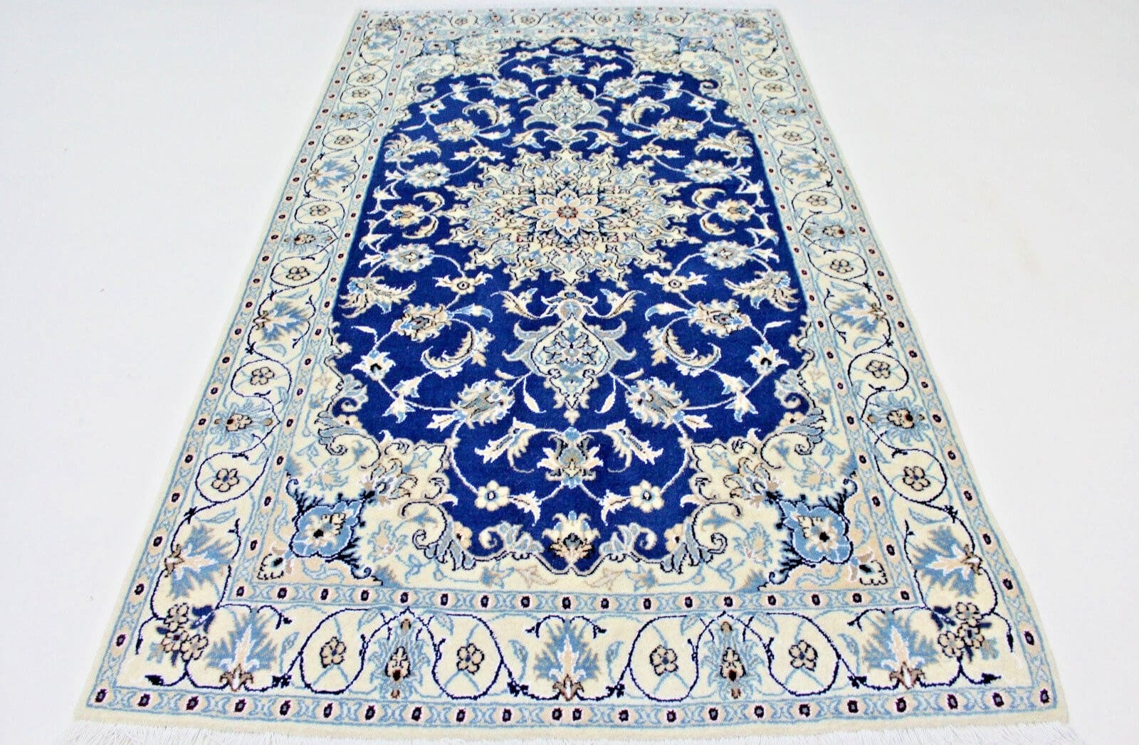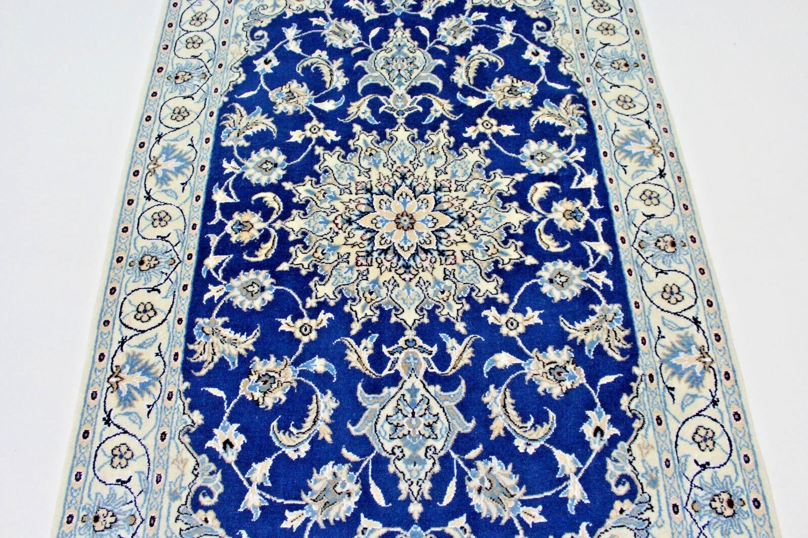 1344$Ursprünglicher Preis war: 1344$1210$Aktueller Preis ist: 1210$Handgeknüpfter Nain Orientteppich | Knotendichte: 250.000 – 300.000 | Material: Flor: 100% Wolle mit Seidenanteil, Kette: 100% Baumwolle | Größe: 201 x 116 cm | Herkunft: Persien | Zustand: Neu