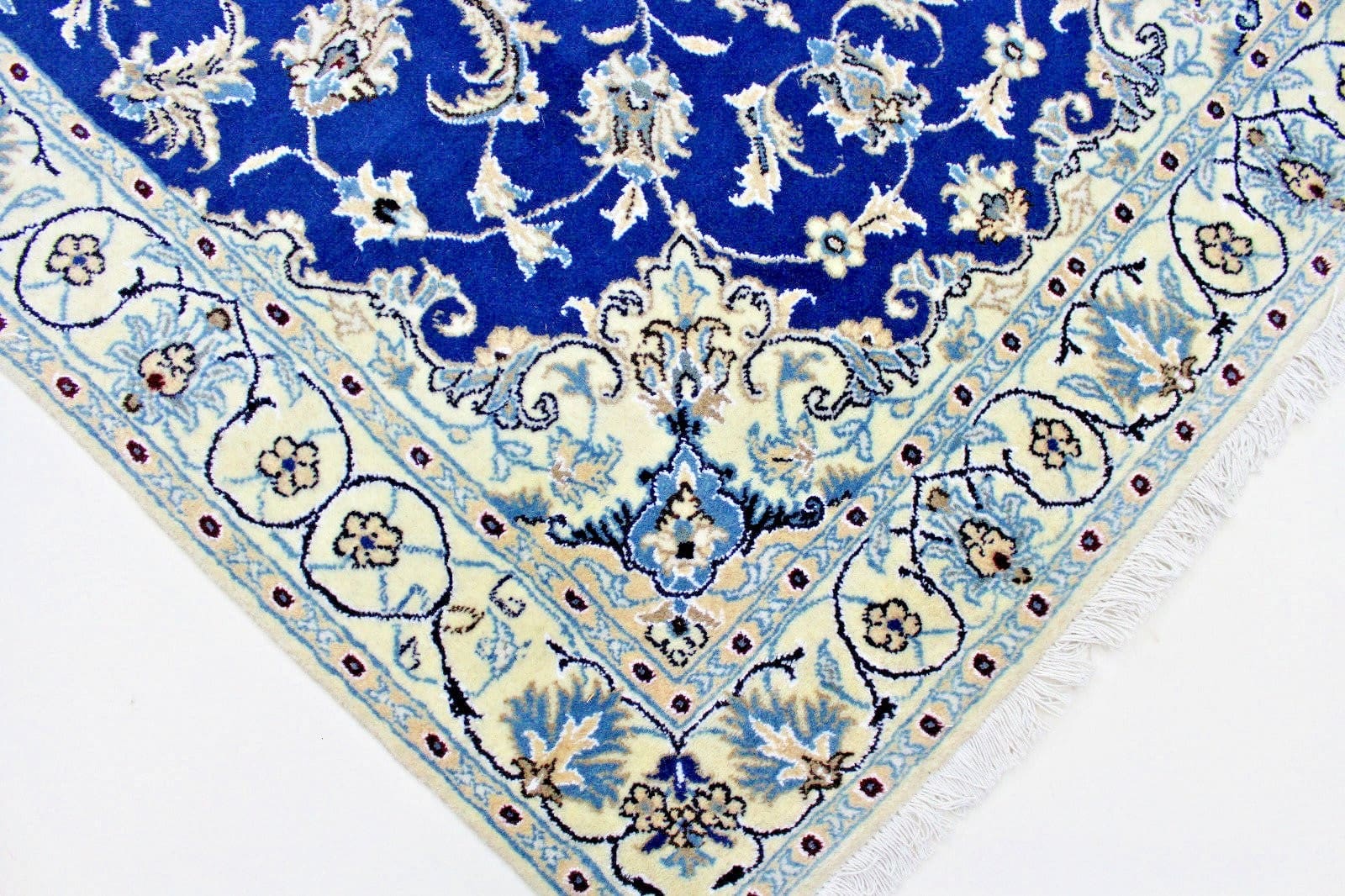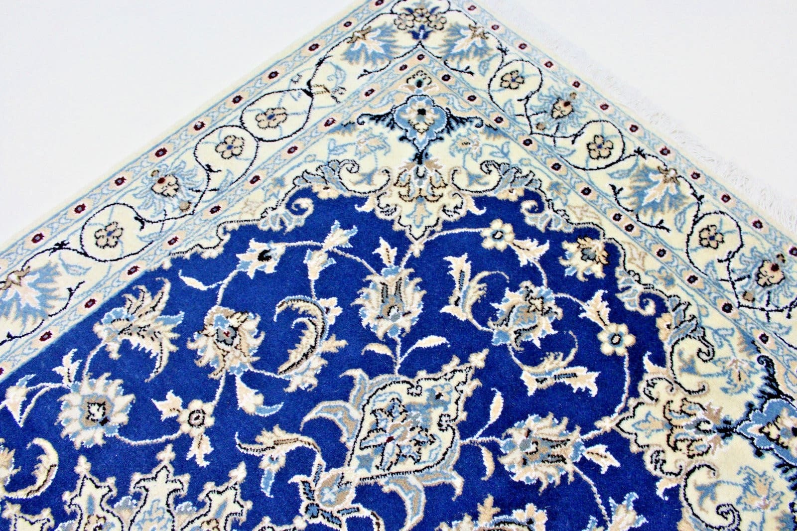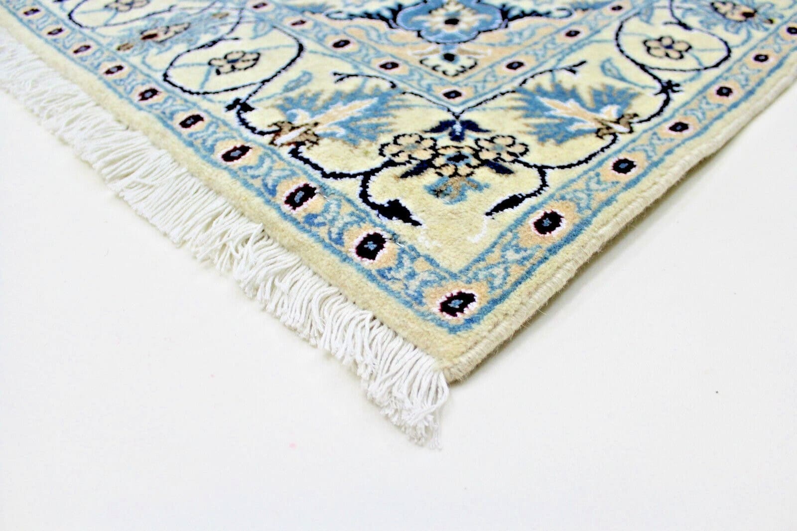 Die Teppichknüpfkunst in Nain hat eine lange Geschichte, die sich bis ins 16. Jahrhundert zurückverfolgen lässt. Sie wurde durch den Einfluss benachbarter Regionen wie Isfahan und Kashan geprägt und hat sich zu einem eigenständigen Stil entwickelt, der für seine Detailverliebtheit und Qualität bekannt ist. Heute sind Nain-Teppiche weltweit geschätzt und gelten als Meisterwerke der persischen Teppichkunst.