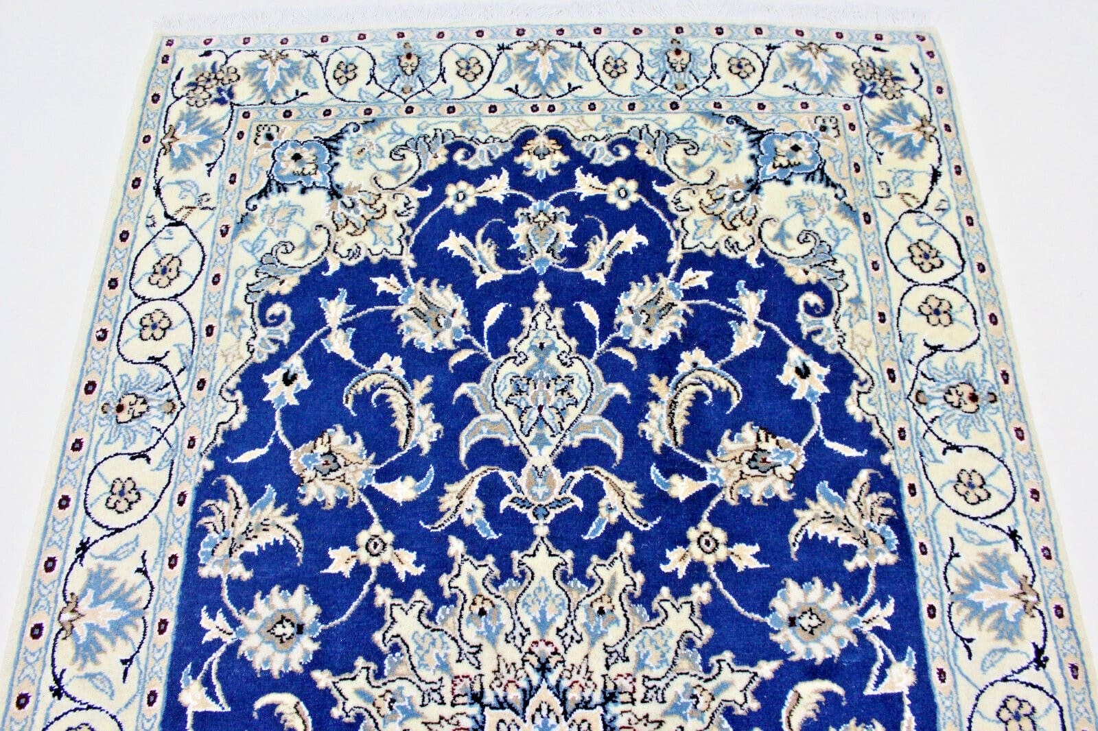 Der Teppich stammt aus Nain, einer Stadt in Persien, die bekannt ist für ihre feinen und kunstvollen Teppiche. Nain hat sich als ein bedeutendes Zentrum der Teppichkunst etabliert und ist besonders für die Herstellung hochwertiger handgeknüpfter Teppiche geschätzt. Die Region ist geprägt von einer langen Tradition in der Teppichproduktion, die bis ins 16. Jahrhundert zurückreicht. Die Teppiche aus Nain sind für ihre exquisite Verarbeitung und die Verwendung edelster Materialien bekannt, was sie zu wertvollen Kunstwerken macht.