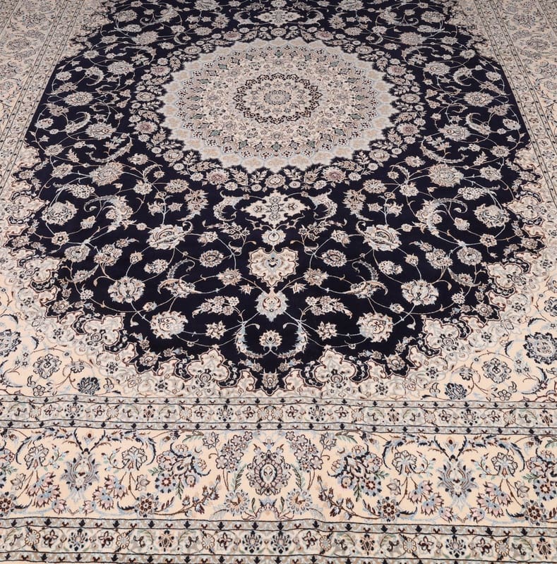 Perserteppich Nain 6La 414 x 311 cm Wolle & Seide handgeknüpft blau H1