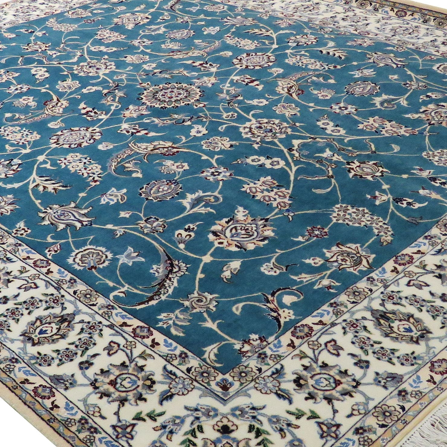 Handgeknüpfter Nain Orientteppich | Knotendichte: 6La 56 Raj (ca. 640.000 / m²) | Material: Seide & Schurwolle | Größe: 210 x 260 cm | Farbe: grün-blau