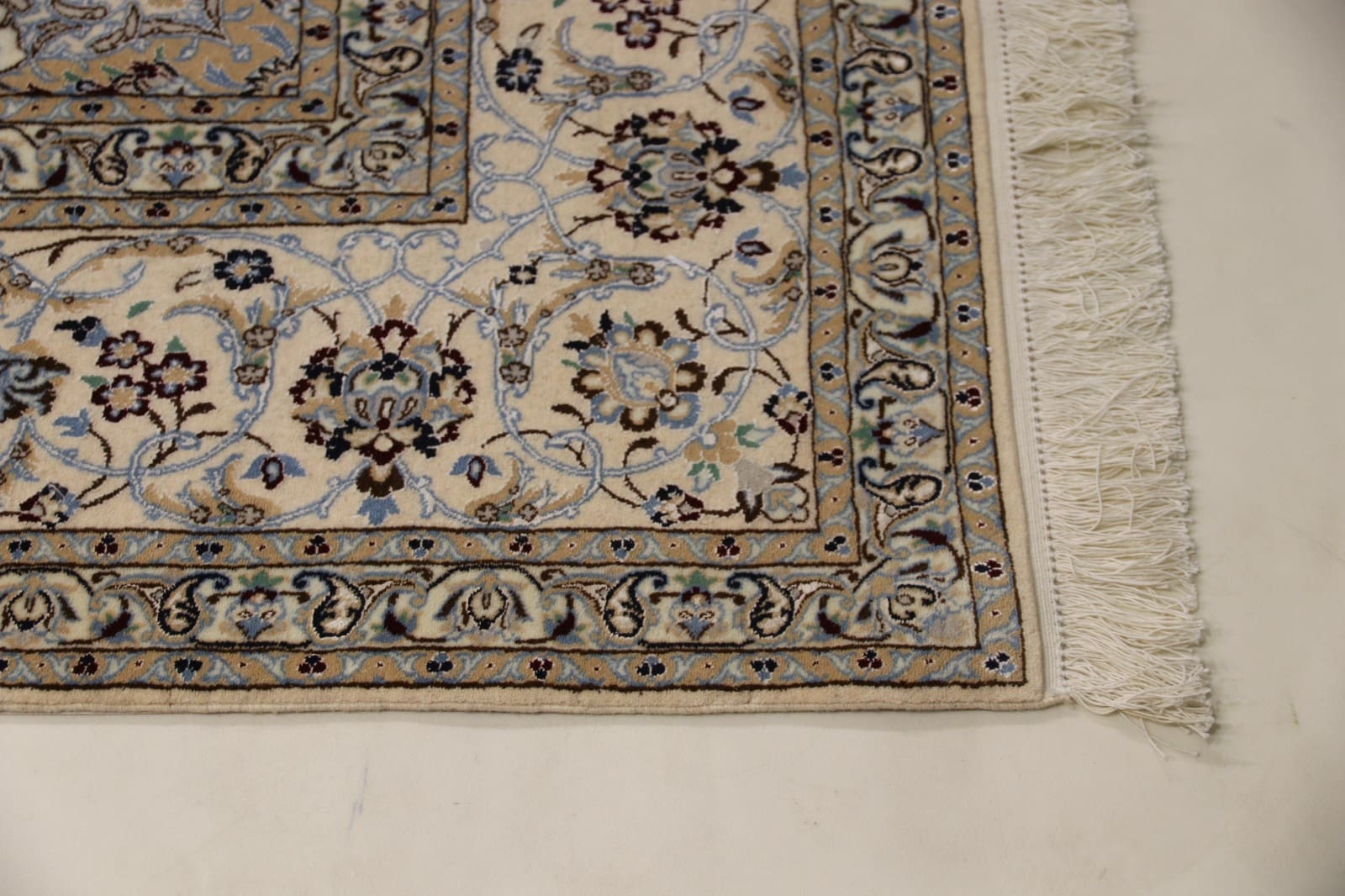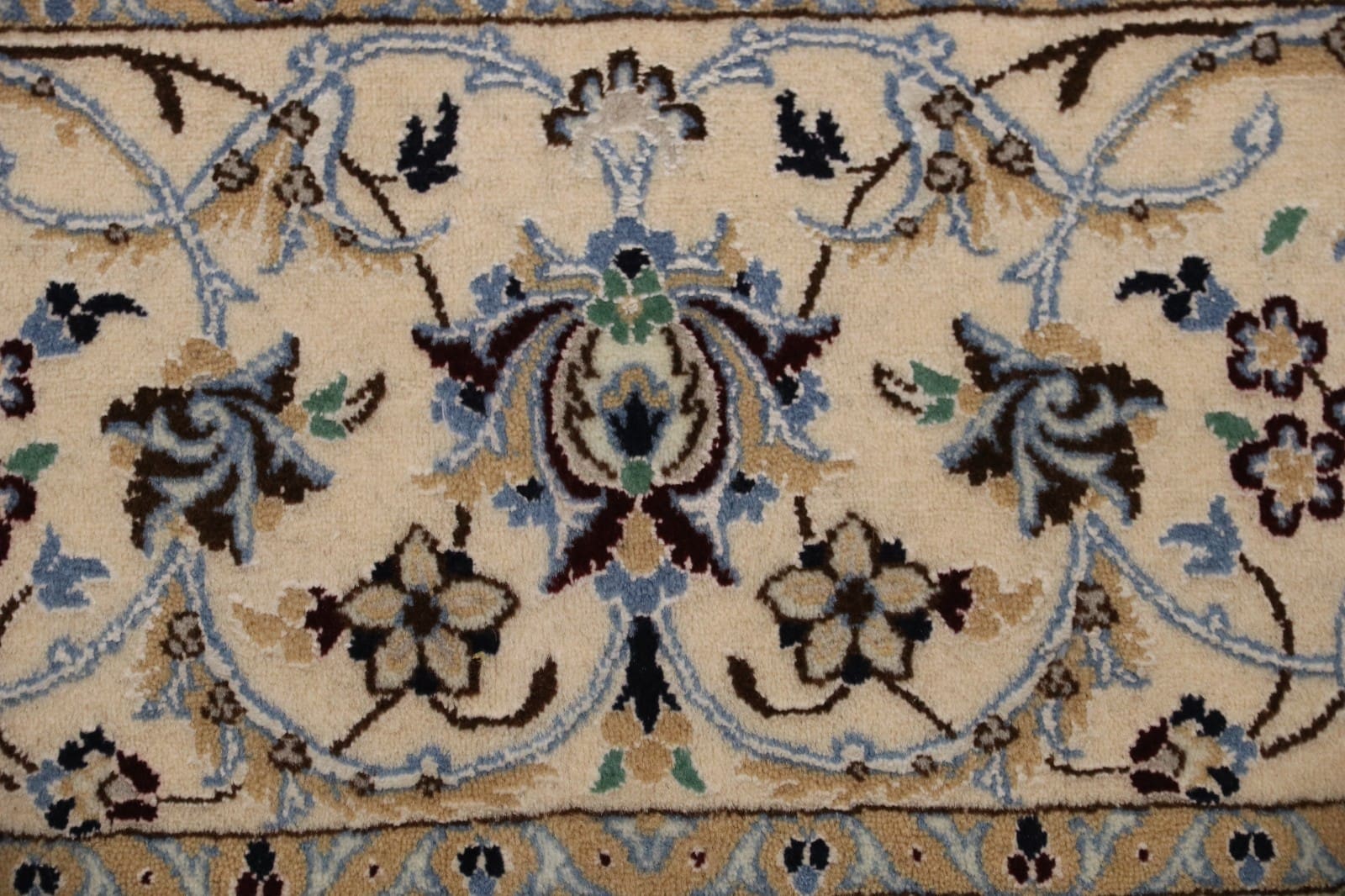 Der Perserteppich Nain 6 La ist für den Innenbereich konzipiert und sollte nicht im Freien verwendet werden. Direkte Sonneneinstrahlung und Feuchtigkeit können das Material schädigen und die Farben ausbleichen.