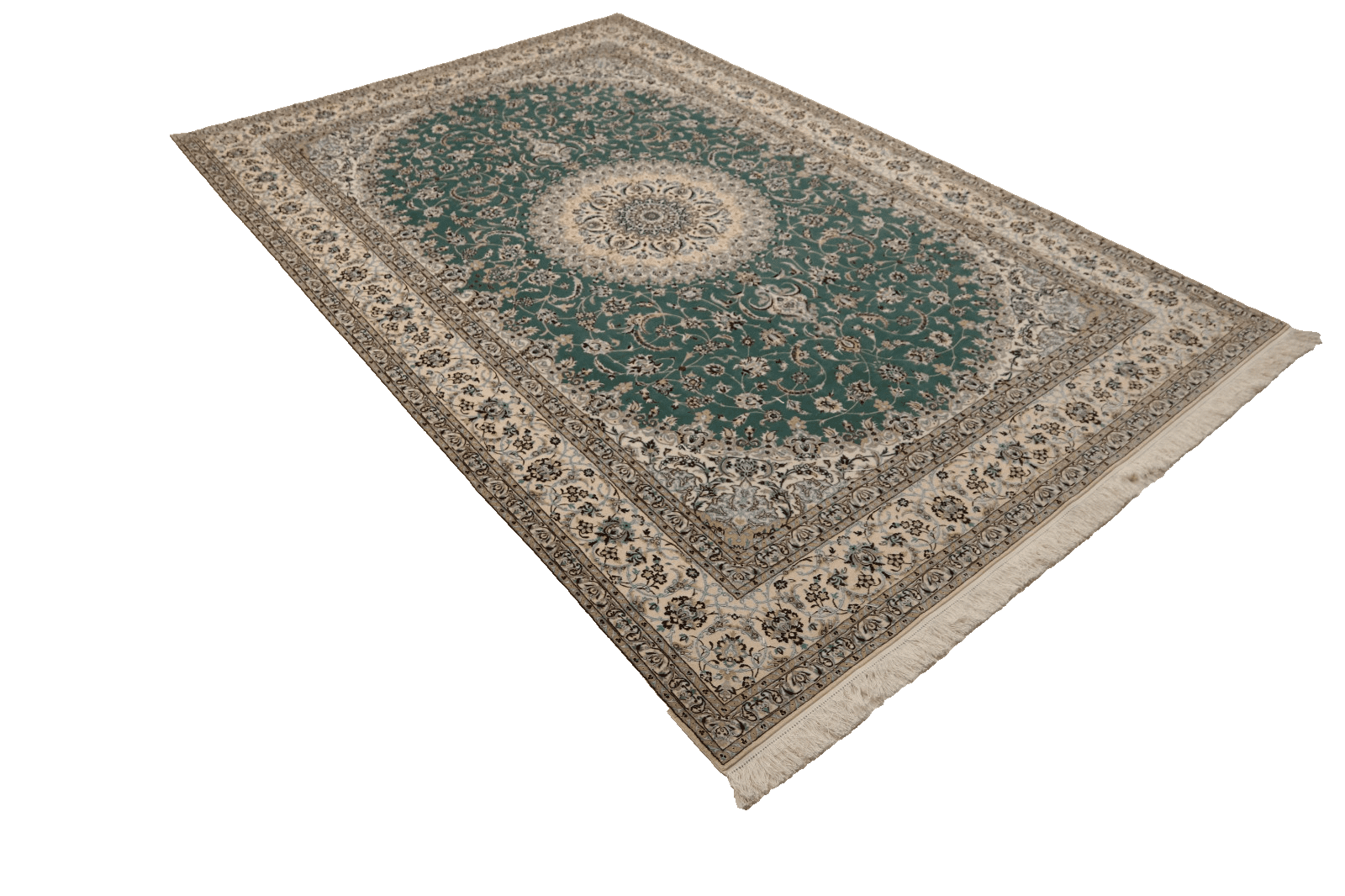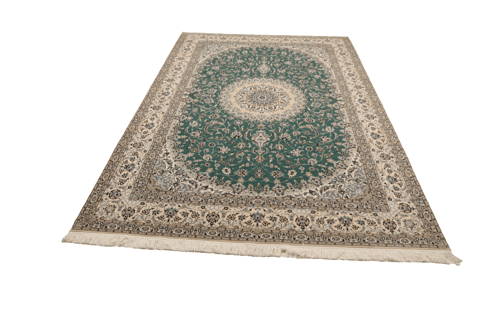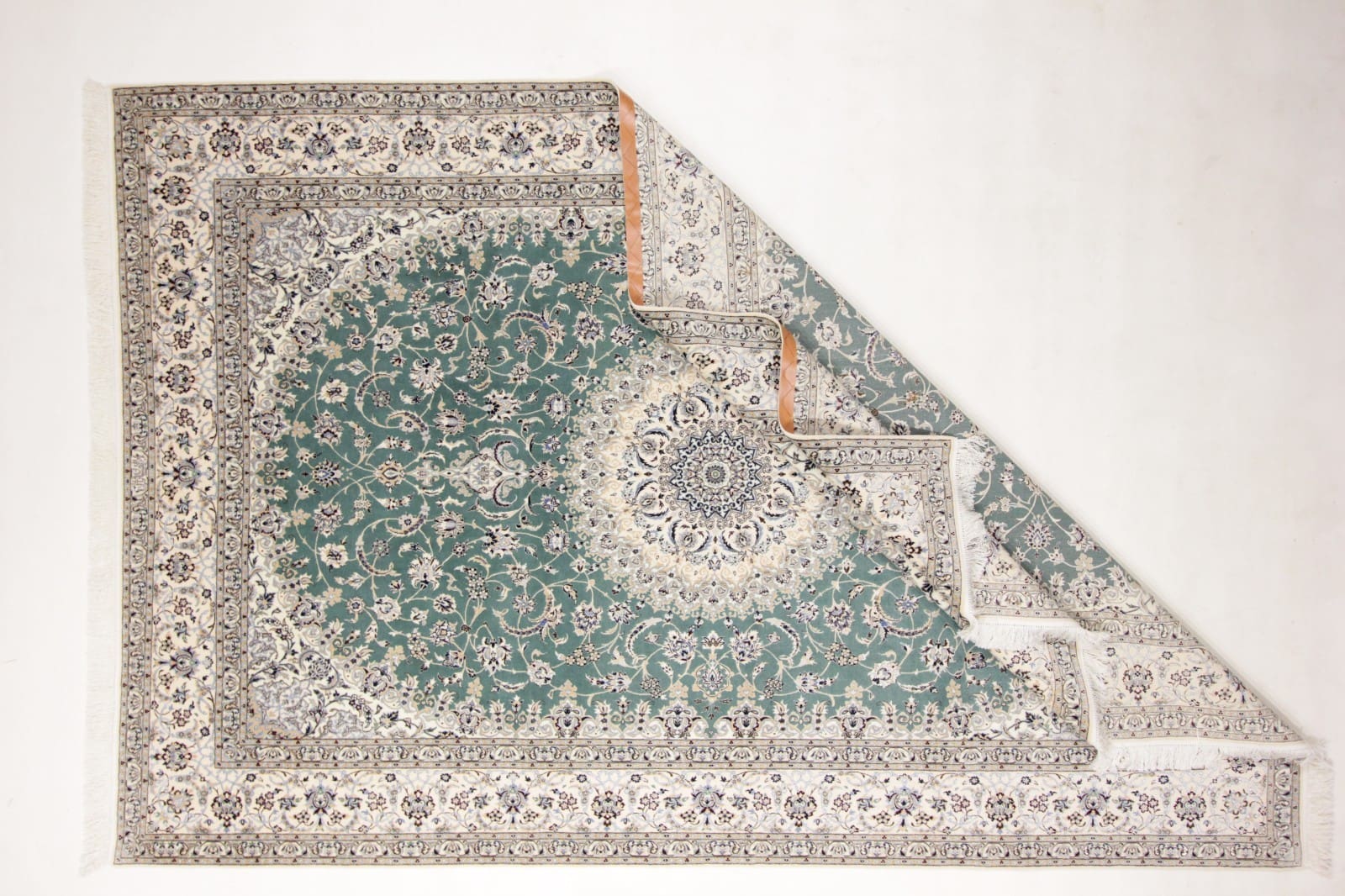 Der Perserteppich Nain 6 La besteht aus edler Seide, die ihm eine luxuriöse Textur und einen angenehmen Glanz verleiht. Seide ist nicht nur für ihre eleganten Eigenschaften bekannt, sondern auch für ihre Robustheit, was den Teppich über Jahre hinweg haltbar macht. Der Teppich wurde in traditioneller Handknüpftechnik gefertigt, wobei jeder Knoten mit größter Präzision und Hingabe gesetzt wurde. Diese Technik gewährleistet eine hohe Qualität und Langlebigkeit, die in der Welt der Teppiche unerreicht ist.