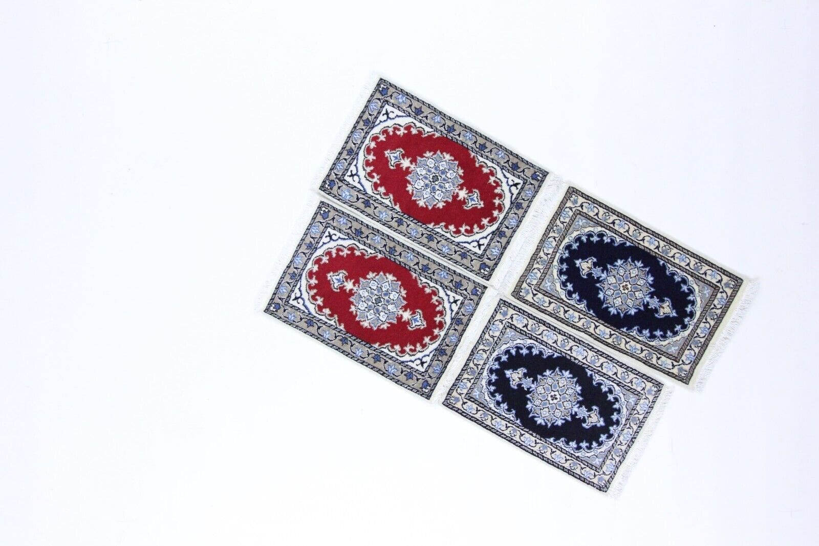 4 Stück Perserteppich Nain 60 x 40 cm – 300.000 Knoten, 100% Schurwolle, handgeknüpft