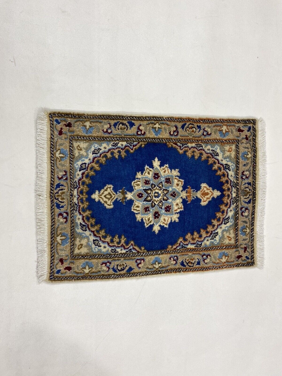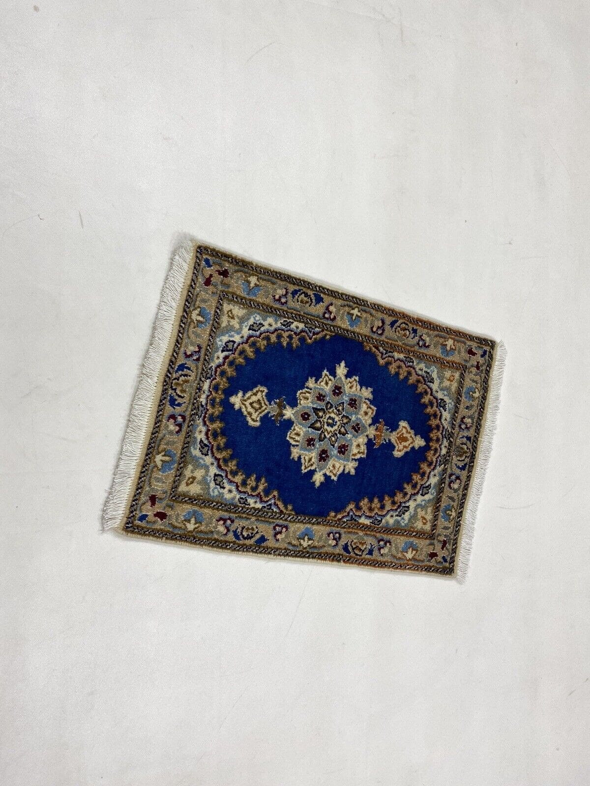 Handgeknüpfter Orientteppich Nain | Größe: 75 x 60 cm | Knotendichte: ca. 300.000 Knoten/m² | Material: 100% Wolle (Flor), 100% Baumwolle (Kette/Schuß) | Dicke: ca. 6 mm | Verarbeitung: handgeknüpft | Zustand: gut | Herkunft: Persien | Stil: Traditionell Persisch/Orientalisch