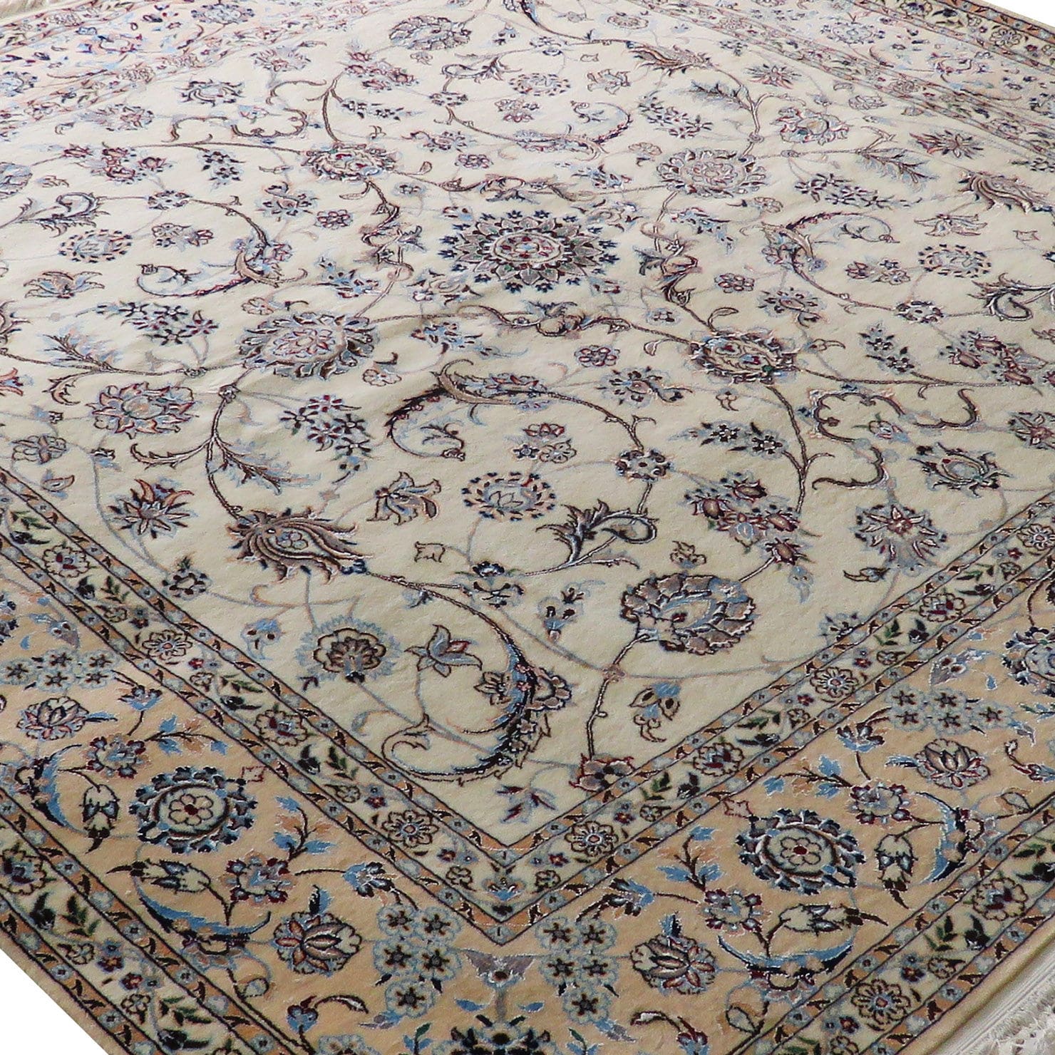 Handgeknüpfter Nain Orientteppich | 6 La (≈ 52 Raj) | Knotendichte: ca. 605.000 / m² | Flor: Wolle & Seide (15 % Seide), Kette: Baumwolle | Größe: 200 x 200 cm | Herkunft: Nain | Farbe: creme, Bordüre: beige | Zustand: neu | Hinweis: Bei Unikaten bitte vor Bestellung die Verfügbarkeit prüfen