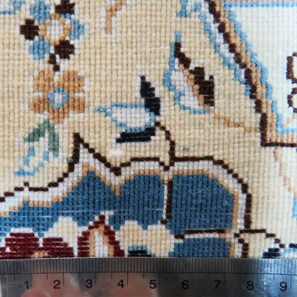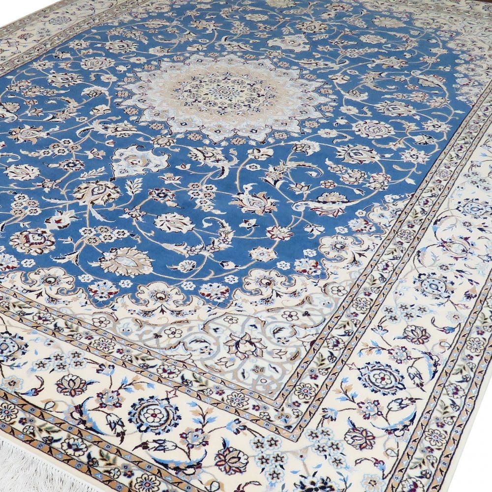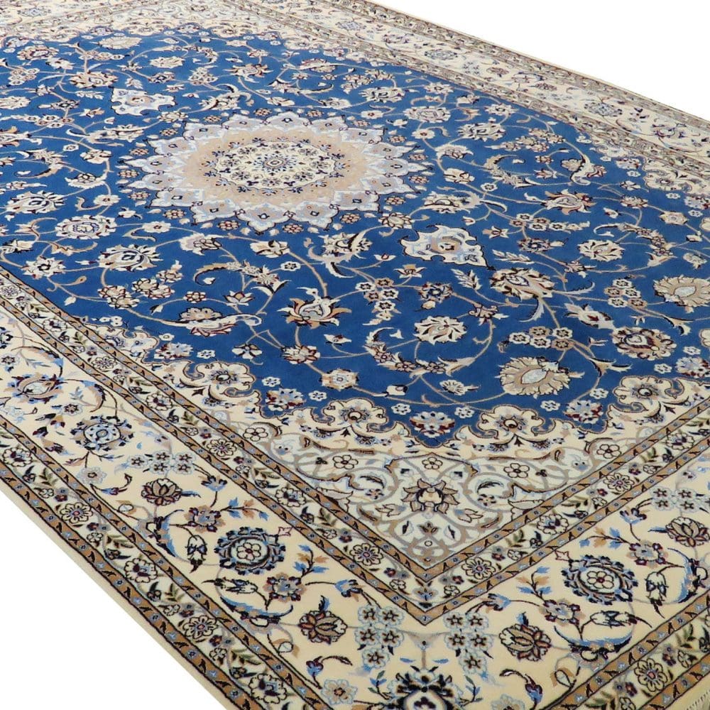 Nain-Teppiche zeichnen sich durch ihre feine Knotendichte, die Verwendung von hochwertiger Wolle und Seide sowie durch ihre typischen Muster aus. Sie gelten als besonders langlebig und sind oft komplexer in ihrem Design im Vergleich zu Teppichen aus anderen Regionen.