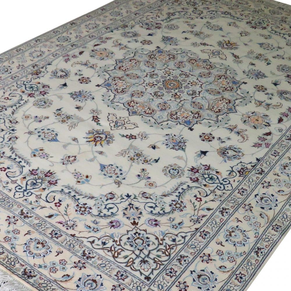 Der Nain-Teppich stammt aus der gleichnamigen Stadt Nain im Iran, die für ihre hohe Qualität in der Teppichproduktion bekannt ist. Die Teppiche aus dieser Region sind berühmt für ihre feinen Materialien und kunstvollen Designs.