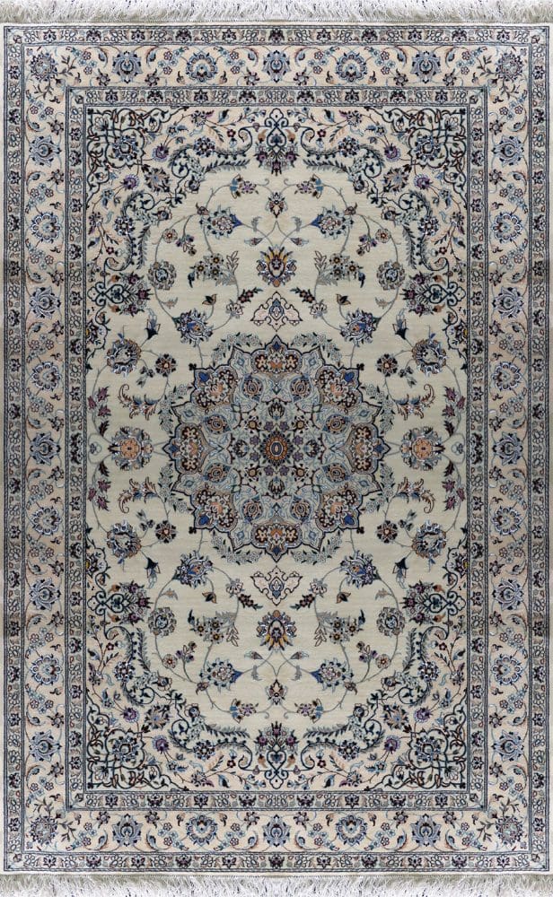 Handgeknüpfter Nain Orientteppich | Knotendichte: 6La 60 Raj (ca. 816.000 / m²) | Material: Schurwolle & Seide | Größe: 160 x 235 cm | Herkunft: Nain | Farbe: creme