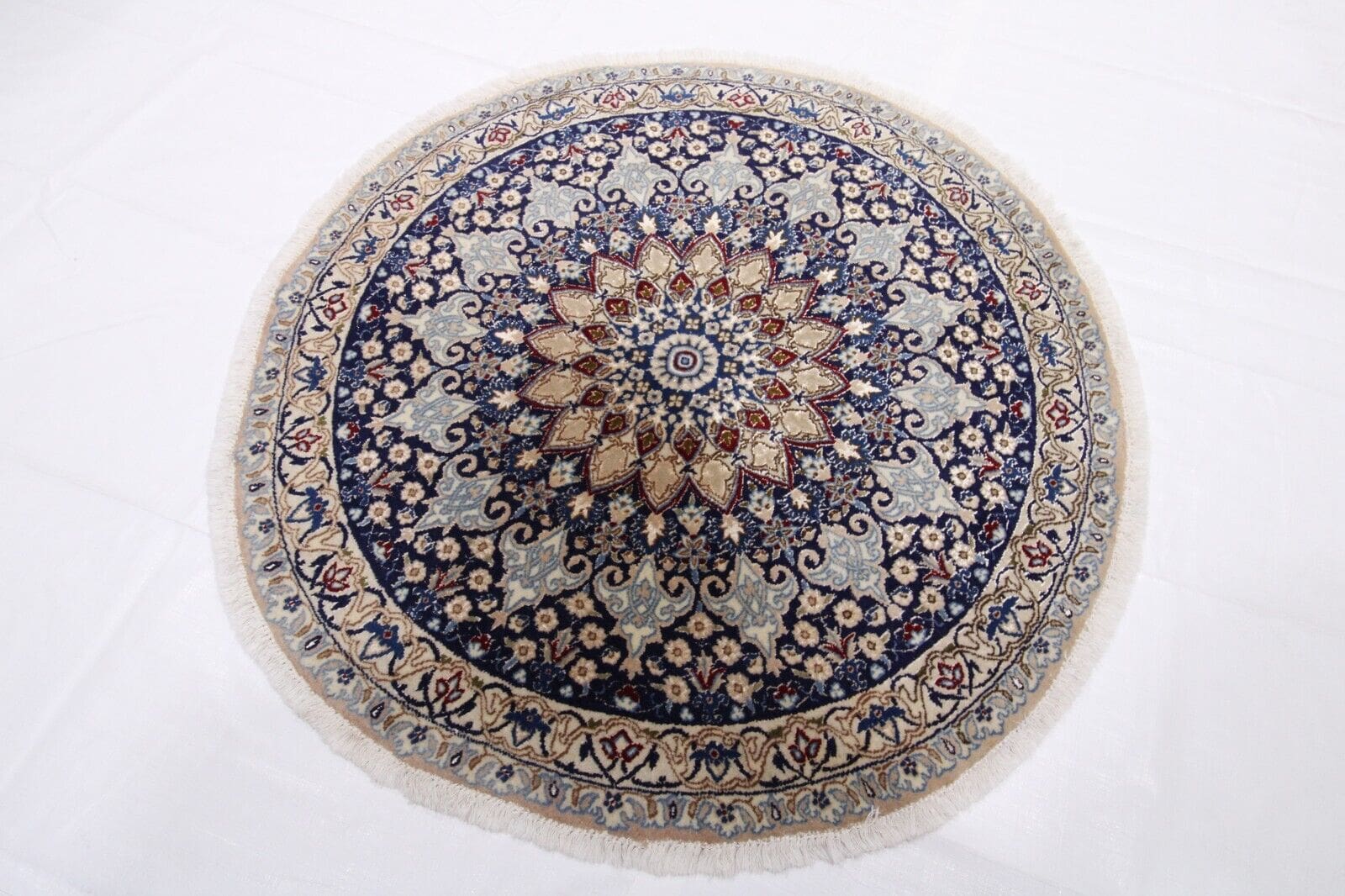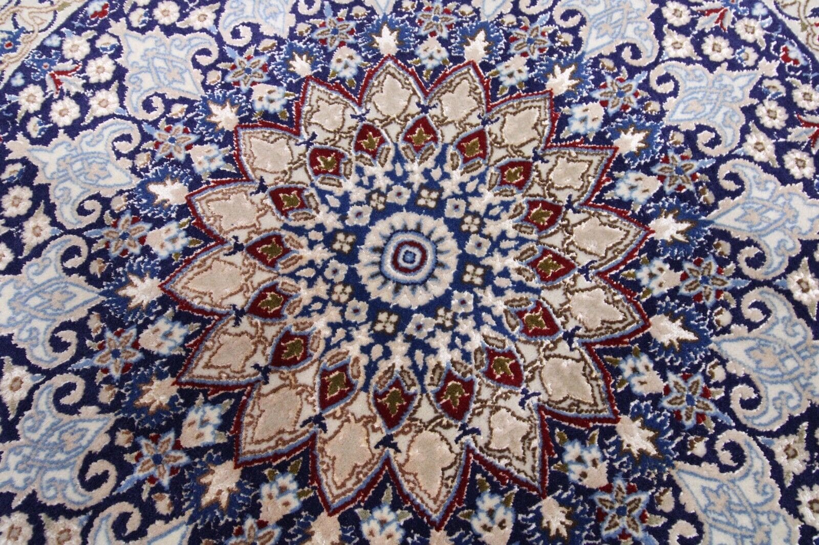 Perserteppich Nain 9La, 105×105 cm, Seide, handgeknüpft, 100% Handarbeit