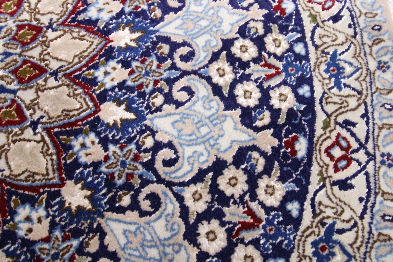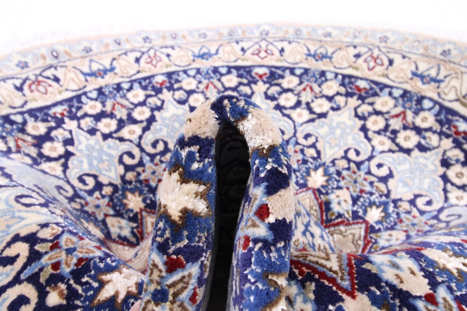 Der Perserteppich Nain 9La zeichnet sich durch seine handgeknüpfte Verarbeitung, die Verwendung von feiner Seide, sowie seine hohe Knotendichte aus. Diese Merkmale sorgen für ein detailliertes Muster und eine außergewöhnliche Langlebigkeit.