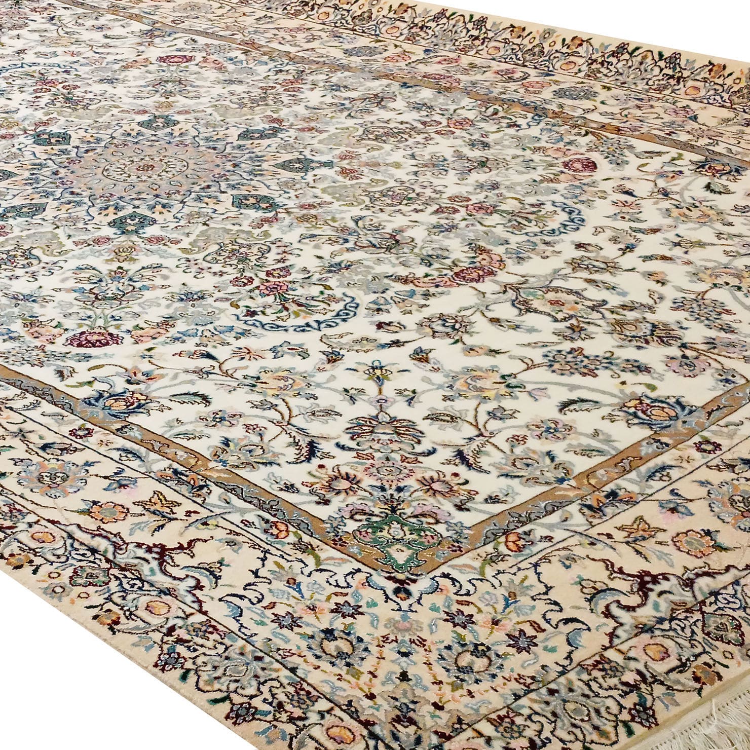 Handgeknüpfter Nain Orientteppich | 9 La (≈ 45 Raj) | Knotendichte: ca. 640.000 / m² | Flor: Wolle & Seide (15 % Seide), Kette: Baumwolle | Größe: 200 x 310 cm | Herkunft: Nain | Farbe: creme, Bordüre: beige | Zustand: neu | Hinweis: Bei Unikaten bitte vor Bestellung die Verfügbarkeit prüfen