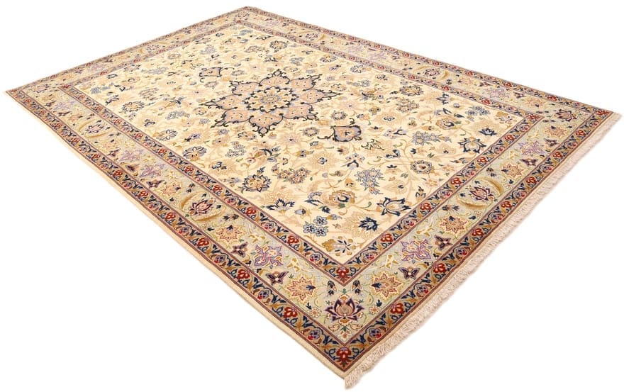 Handgeknüpfter Najafabad Orientteppich | Knotendichte: 225.000 / m² | Material: Wolle (Flor), Baumwolle (Kette) | Größe: 347 x 226 cm | Herkunft: Iran / Persien | Zustand: Neuzeitlich | Farbe: Weiß/Beige