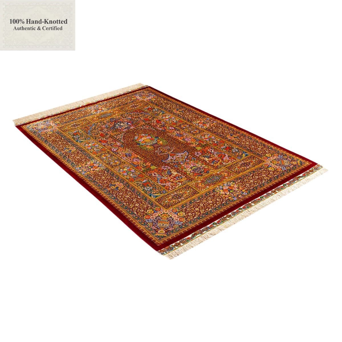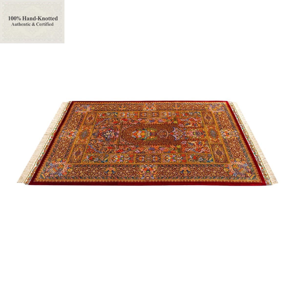 Perserteppich Qom 135 x 200 cm Seide handgeknüpft „Arablou“ signiert H1