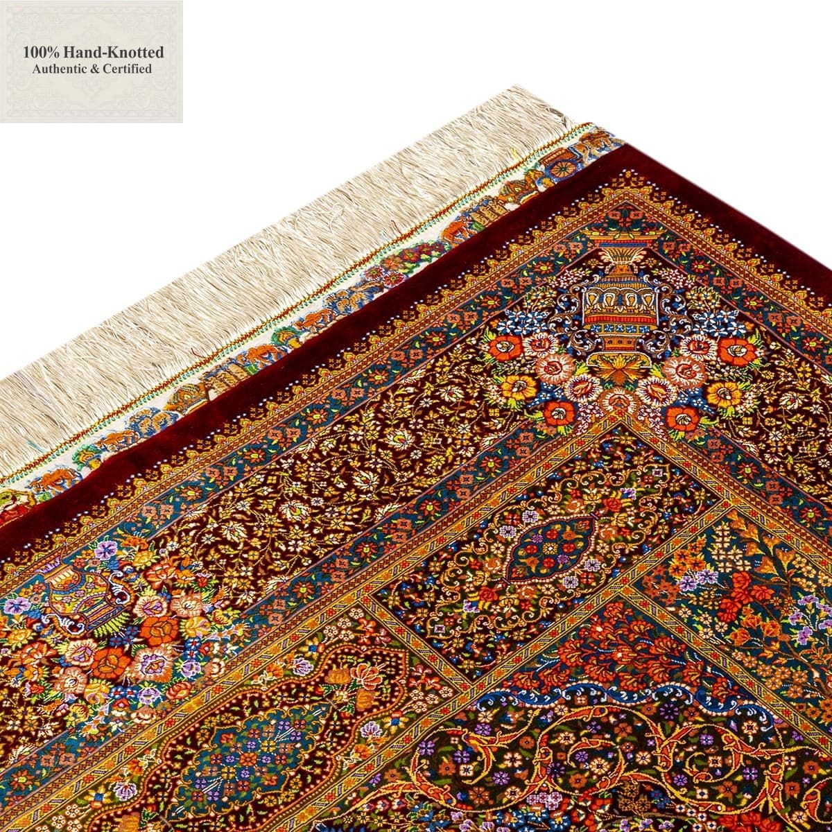 Die Knotendichte beträgt (ca. 1.000.000 Knoten / m²). Der Teppich besteht vollständig aus Seide. Weitere technische Besonderheiten sind nicht angegeben.