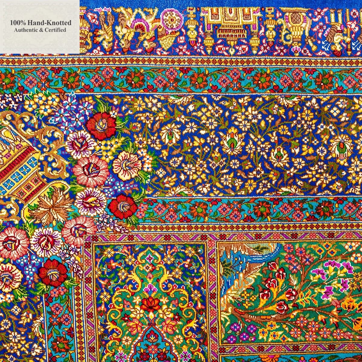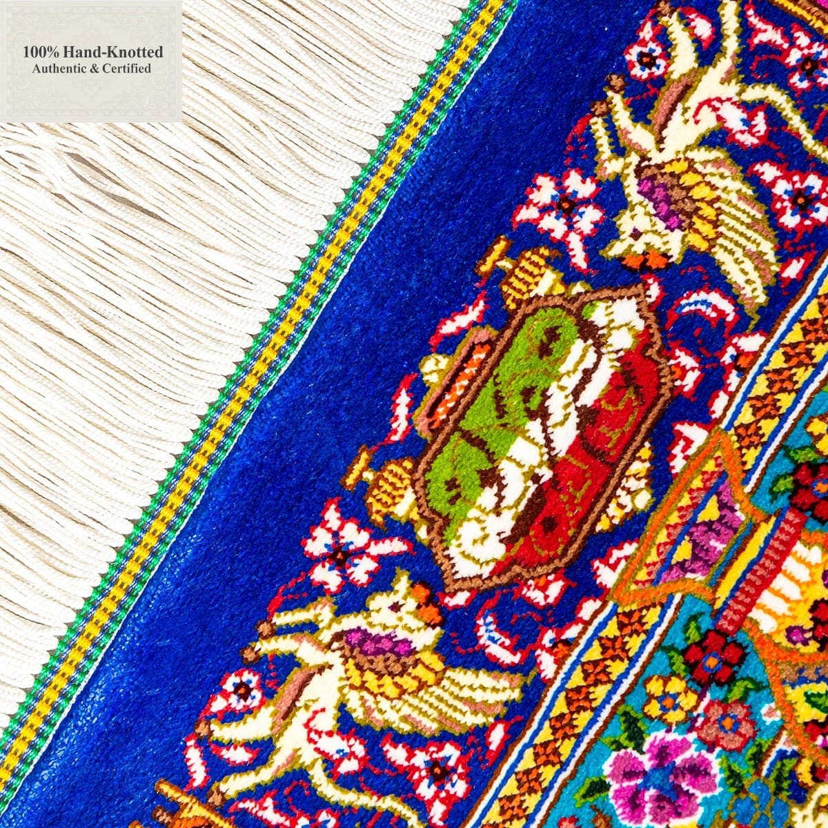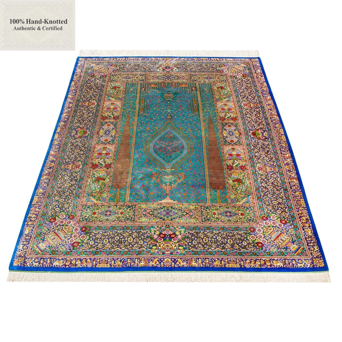 Handgeknüpfter Qom Orientteppich | Knotendichte: 1.200.000 / m² | Material: Flor: Seide, Kette: Seide, Schuss: Seide | Größe: 200 x 136 cm | Herkunft: Qom | Farbe: blau | Marke: Arablou | Hinweis: Bei Unikaten bitte vor Bestellung die Verfügbarkeit prüfen