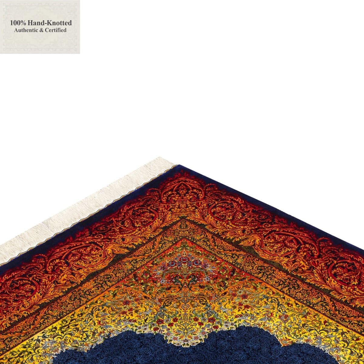 Handgeknüpfter Qom Orientteppich | Knotendichte: 1.000.000 / m² | Material: Flor: Seide, Kette: Seide, Schuss: Seide | Größe: 295 x 200 cm | Herkunft: Qom | Farbe: blau | Marke: Amir | Hinweis: Bei Unikaten bitte vor Bestellung die Verfügbarkeit prüfen