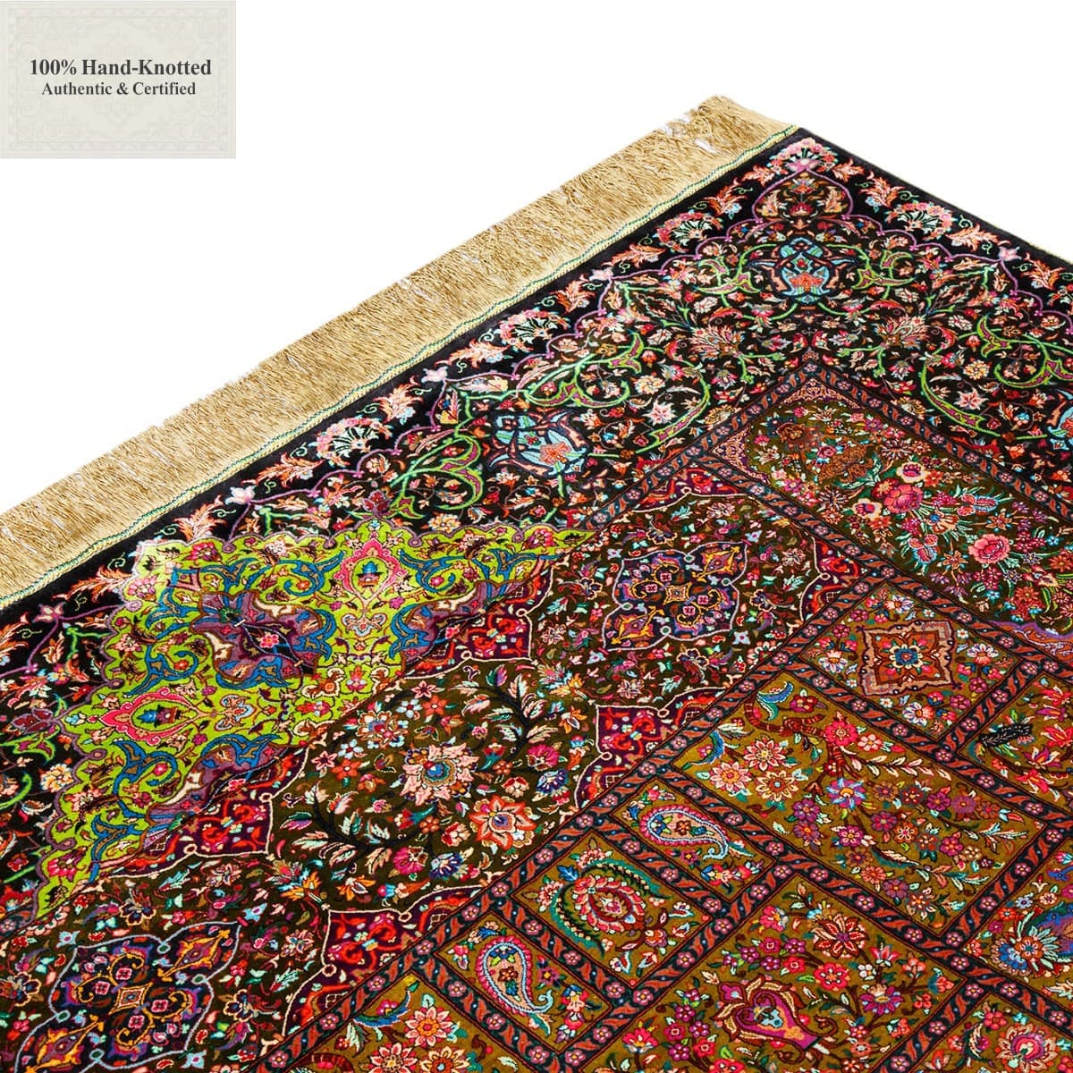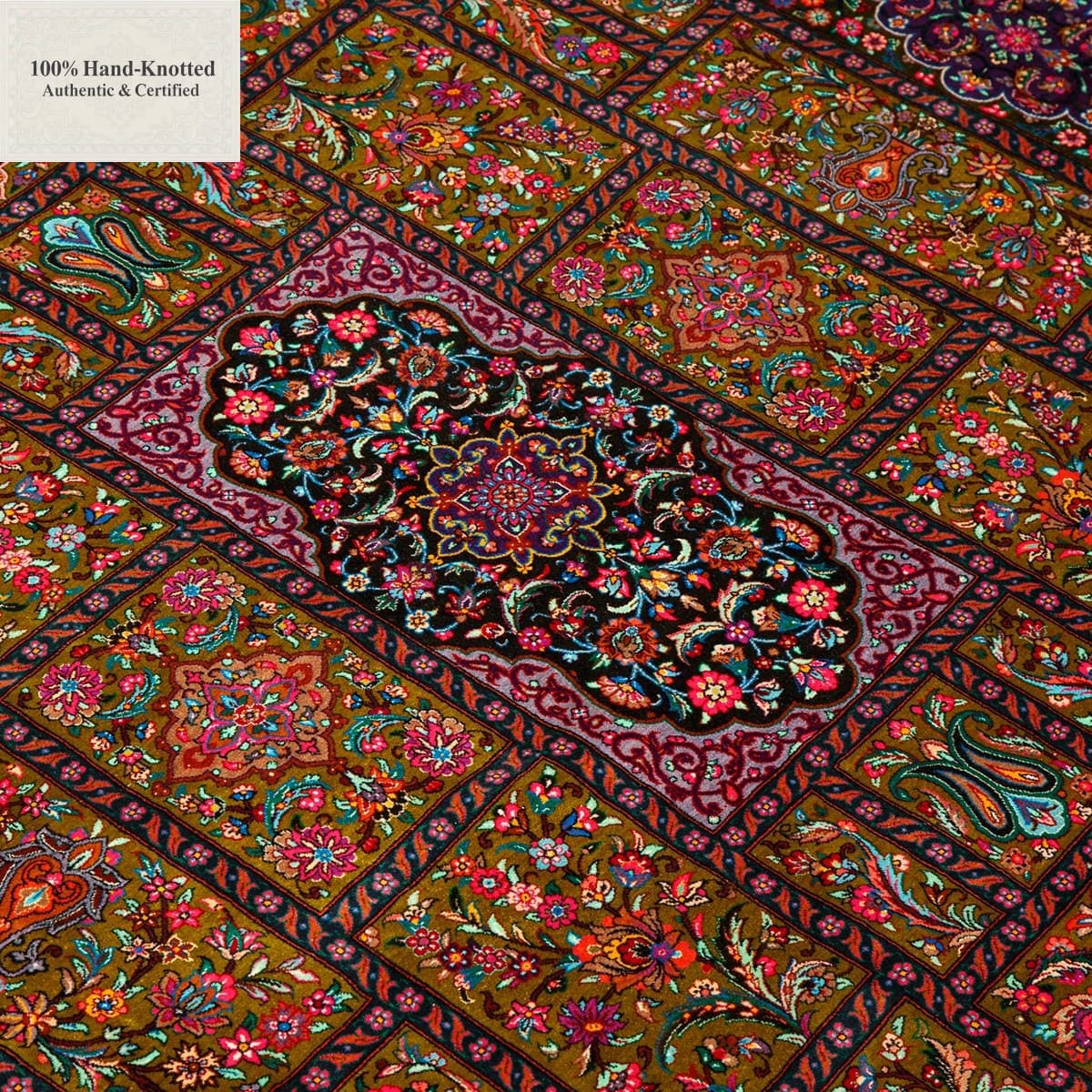 Handgeknüpfter Qom Orientteppich | Knotendichte: 1.000.000 / m² | Material: Seide | Größe: 298 x 203 cm | Herkunft: Qom | Farbe: grün | Marke: Kimia | Hinweis: Bei Unikaten bitte vor Bestellung die Verfügbarkeit prüfen