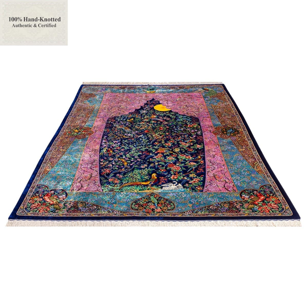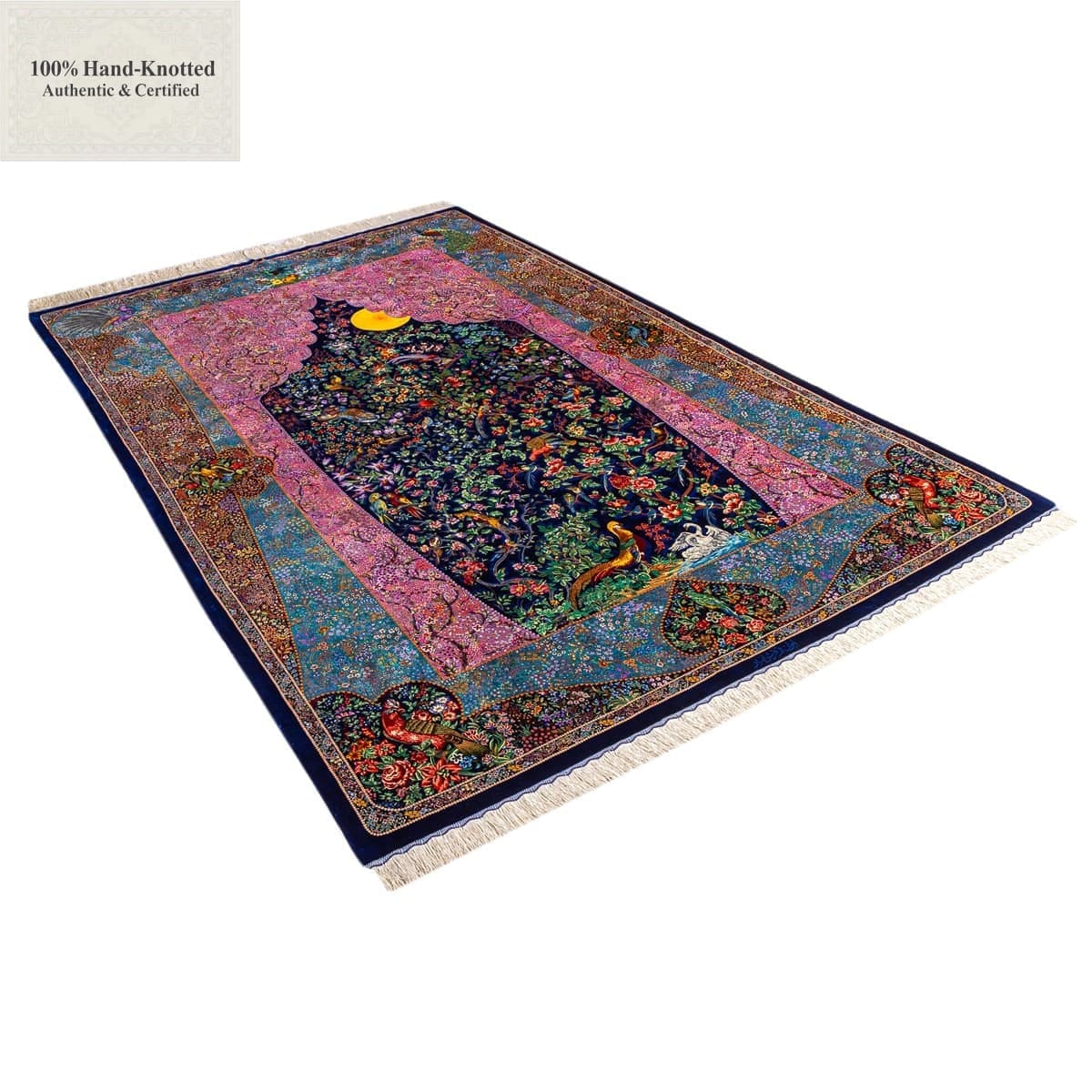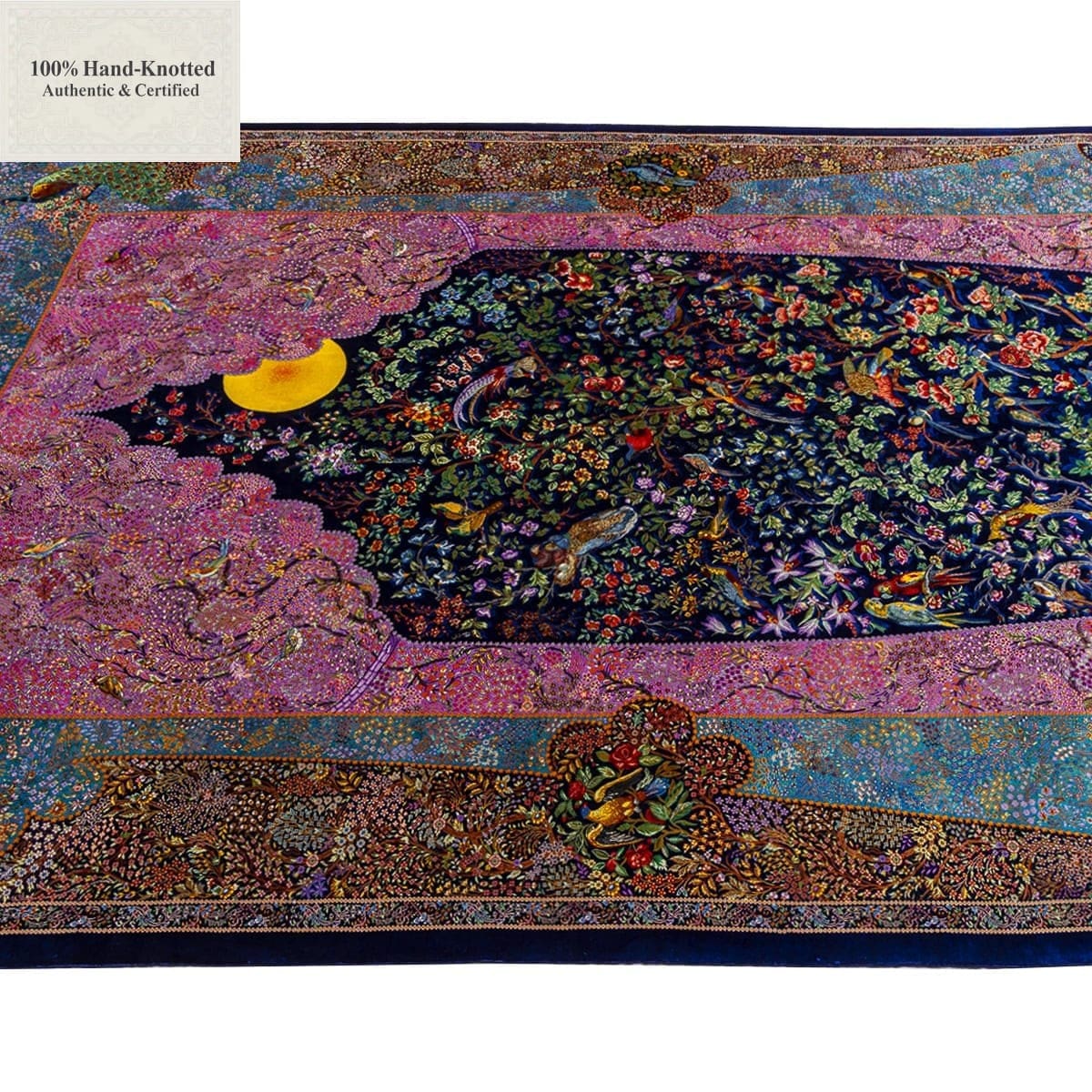 Perserteppich Qom 300 x 200 cm Seide 70 Raj 1 Mio. Knoten/Qm handgeknüpft Nachtlandschaft Muster „Amir“ signiert H1