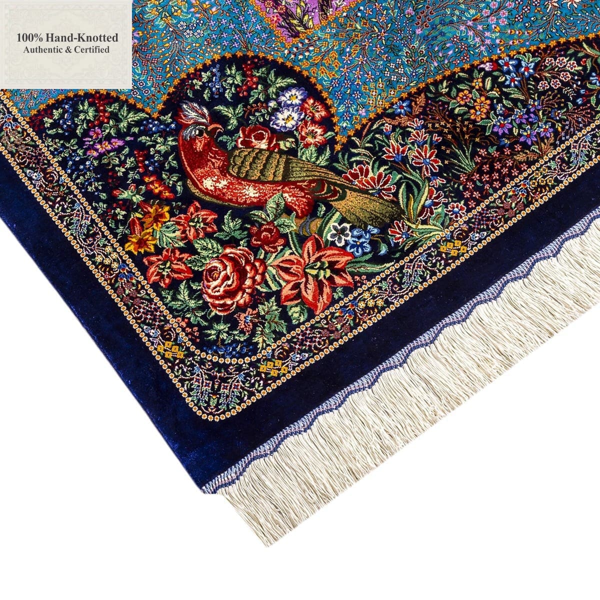 Handgeknüpfter Qom Orientteppich | Knotendichte: 1.000.000 / m² | Material: Seide | Größe: 300 x 200 cm | Herkunft: Qom | Farbe: blau | Marke: Amir | Hinweis: Bei Unikaten bitte vor Bestellung die Verfügbarkeit prüfen