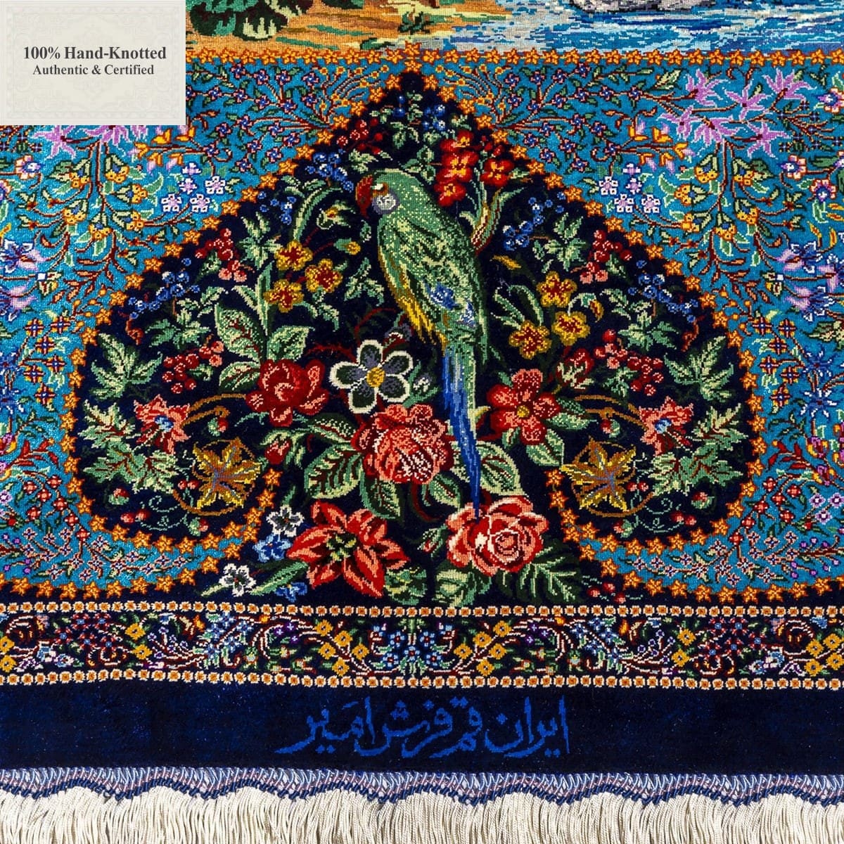 Die Knotendichte beträgt (ca. 1.000.000 Knoten / m²). Der Teppich besteht vollständig aus Seide und ist von der Marke Amir. Weitere technische Besonderheiten sind nicht angegeben.