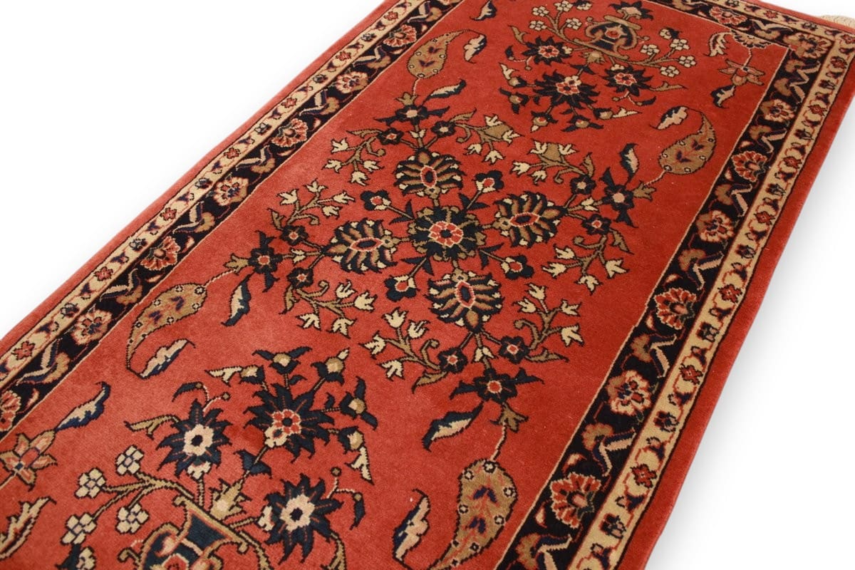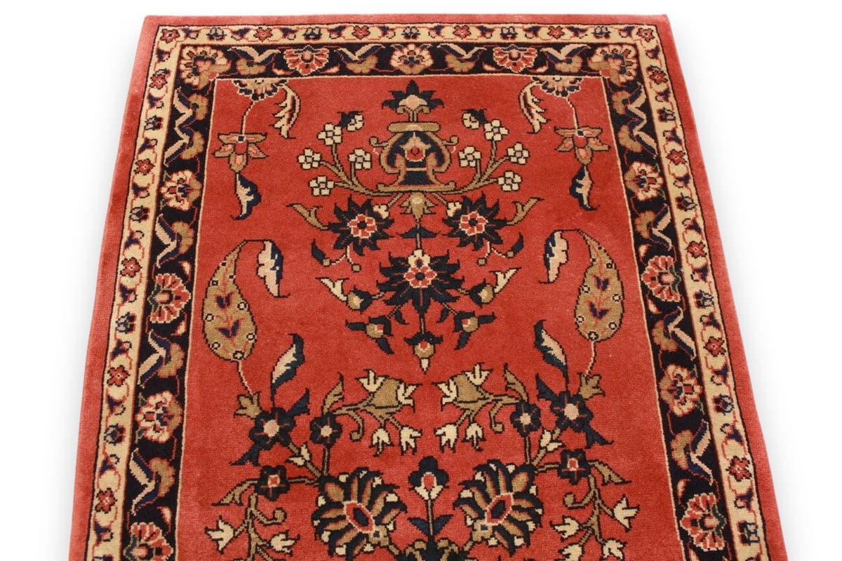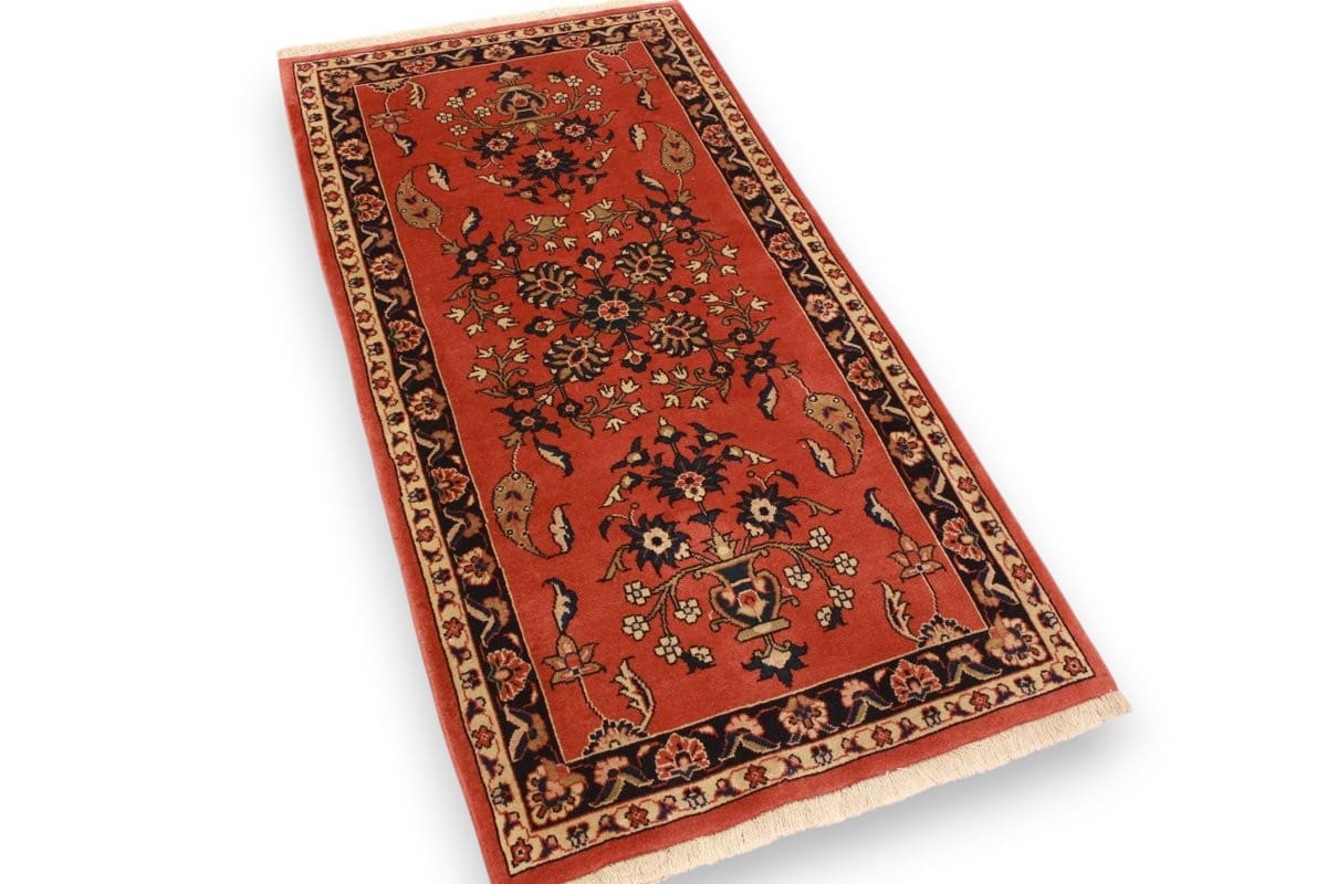 | Traditioneller Perserteppich aus Sarough | Knotendichte: Hoch | Material: Hochwertige Wolle | Größe: 148×74 cm | Farbenfrohe Blatt- und Blumenmotive | In ausgezeichnetem Zustand | Ursprung: Orient