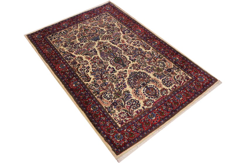 Perserteppich Sarough | Knotendichte: Hoch | Material: Exzellente Wolle | Größe: 154×103 cm | Muster: Farbenfrohe Blatt- und Blumenmotive | Zustand: Sehr gut | Ursprung: Orient