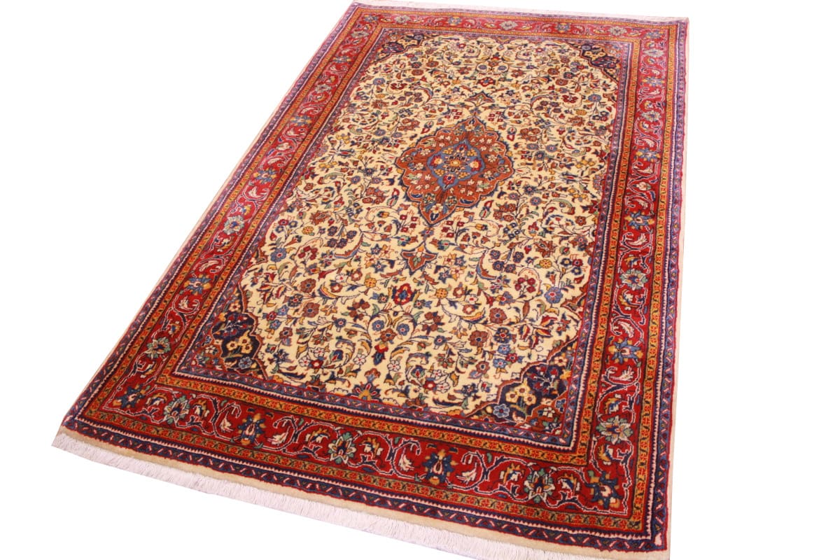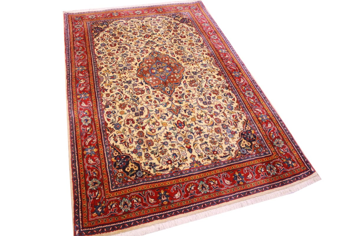Perserteppich Sarough 167×106 cm Beige, Blumenmuster, handgeknüpft