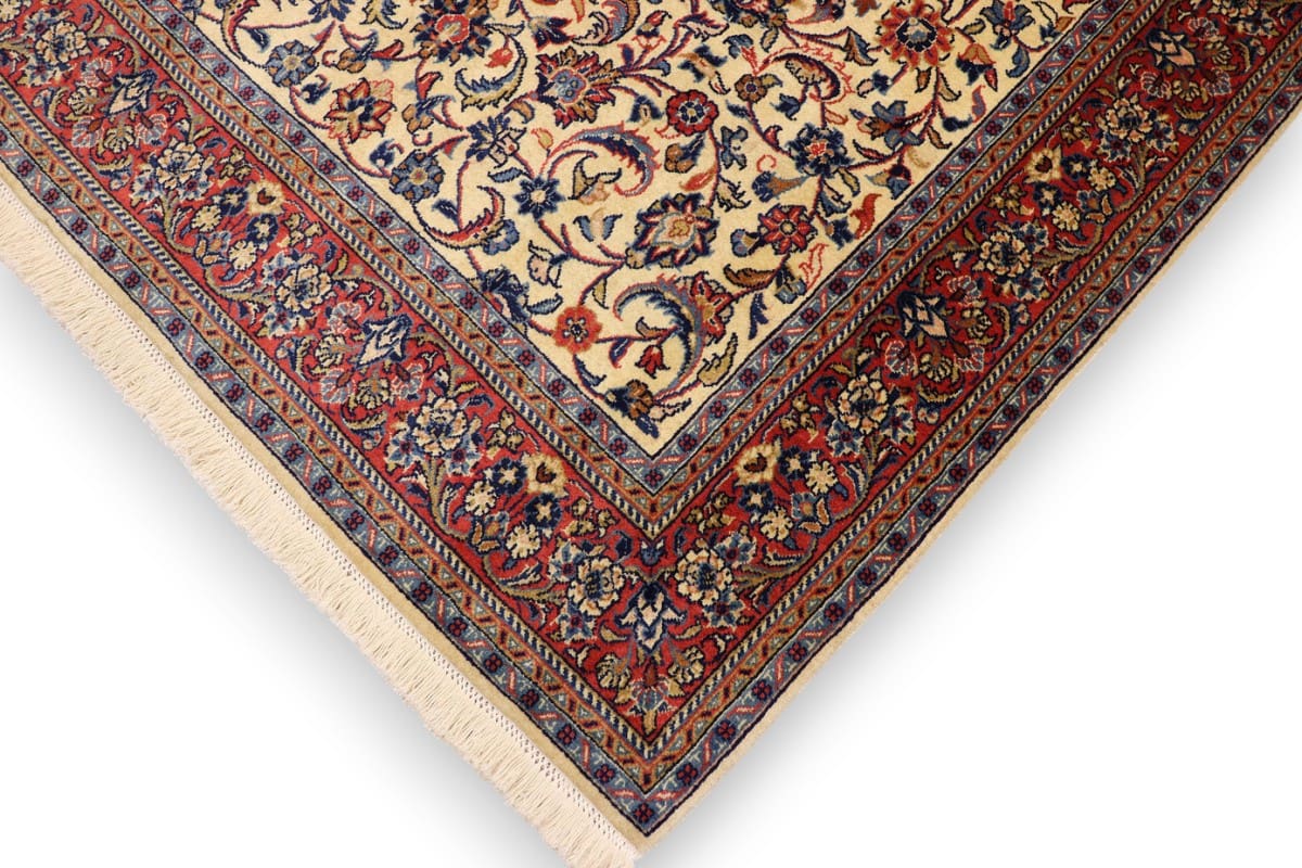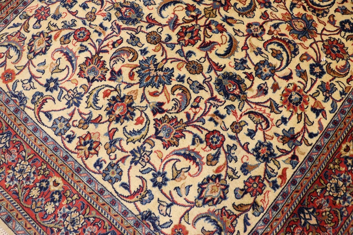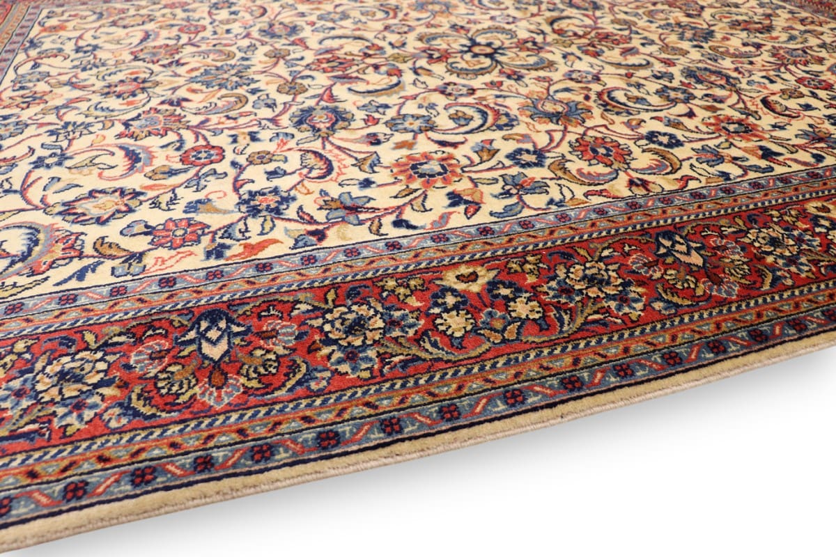 Der Sarough-Teppich stammt aus der gleichnamigen Region Sarough im Iran, einer der bekanntesten Provinzen für die Herstellung hochwertiger Perserteppiche. Die iranische Teppichkunst hat eine lange und glorreiche Geschichte, die über Jahrhunderte zurückreicht. In der Region Sarough werden Teppiche oft in leuchtenden Farben und mit opulenten, floralen Designs hergestellt, die die Schönheit der umliegenden Natur reflektieren. Die handwerklichen Fähigkeiten der Teppichknüpfer werden von Generation zu Generation weitergegeben, wobei jede kleine Region ihre eigenen spezifischen Stile entwickelt hat. Die Teppiche aus Sarough sind nicht nur für ihre kunstvollen Muster bekannt, sondern auch für ihre hervorragende Haltbarkeit und Funktionalität.
