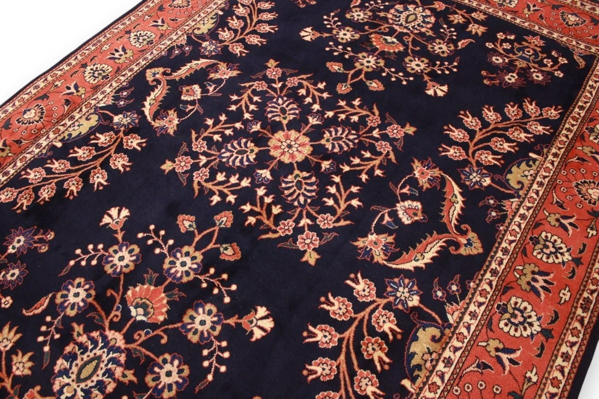 Traditioneller Perserteppich Sarough | Knotendichte: Hoch | Material: Hochwertige Wolle | Größe: 242×177 cm | Muster: Farbenfrohe Blatt- und Blumenmotive | Zustand: Sehr gut | Ursprung: Iran