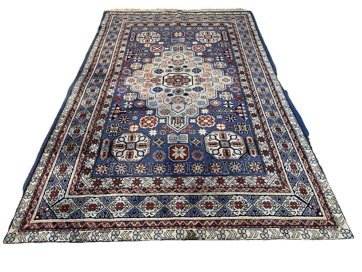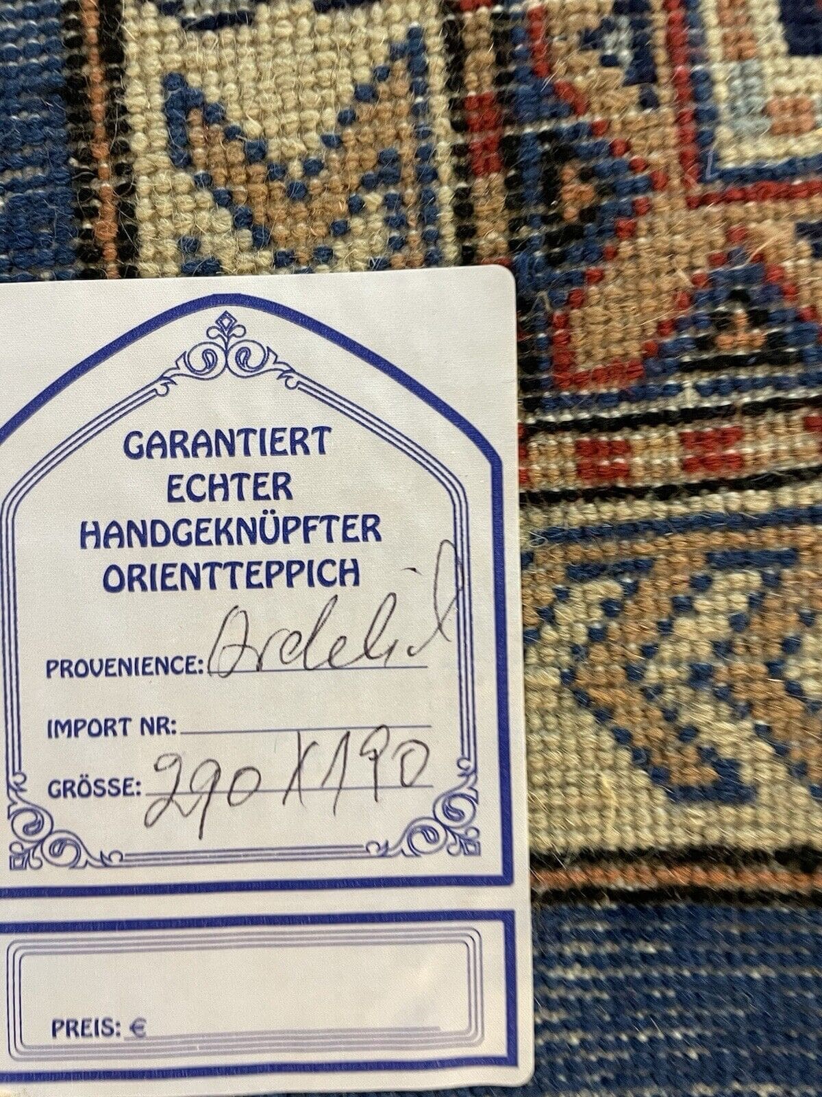 Alter Original Orientteppich Abadeh | Handgeknüpft | Größe: 290 x 190 cm | Material: 100% Wolle | Knoten: ca. 220.000/m² | Florhöhe: 1,5 cm | Zustand: Super | Herkunft: Persien | Farbton: Türkis | Muster: Spiegel, Kazak Design | Stil: Klassisch | Rechteckige Form | Ideal für Wohn- und Schlafzimmer