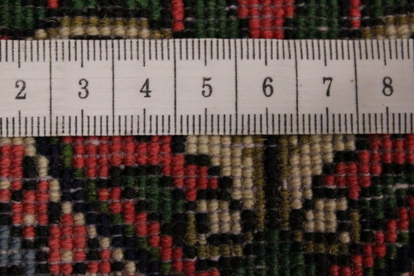 Die Knotendichte ist ein Maß für die Qualität eines Teppichs. Bei diesem Modell ist die Knotendichte besonders hoch, was die Langlebigkeit und die feine Ausarbeitung des Musters bestätigt. Ein hoher Knotendichte bedeutet auch, dass die Farben strahlender erscheinen und die Details des Designs klar und deutlich zur Geltung kommen.