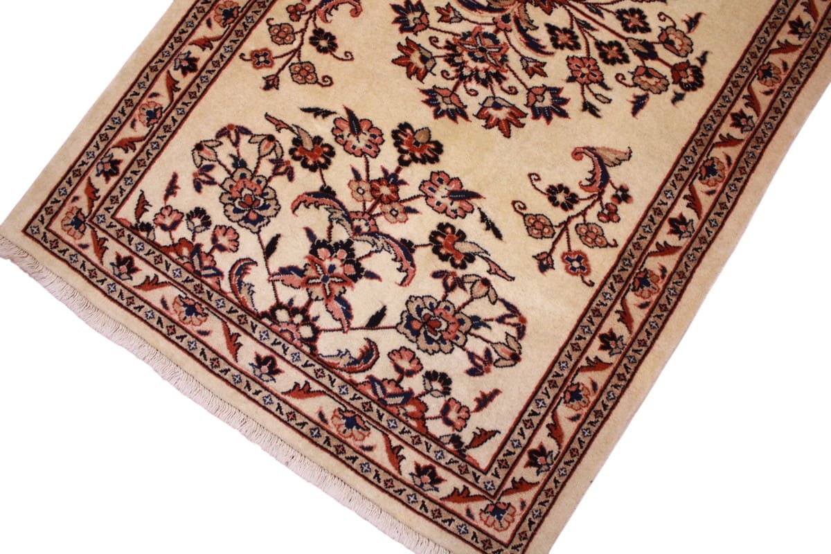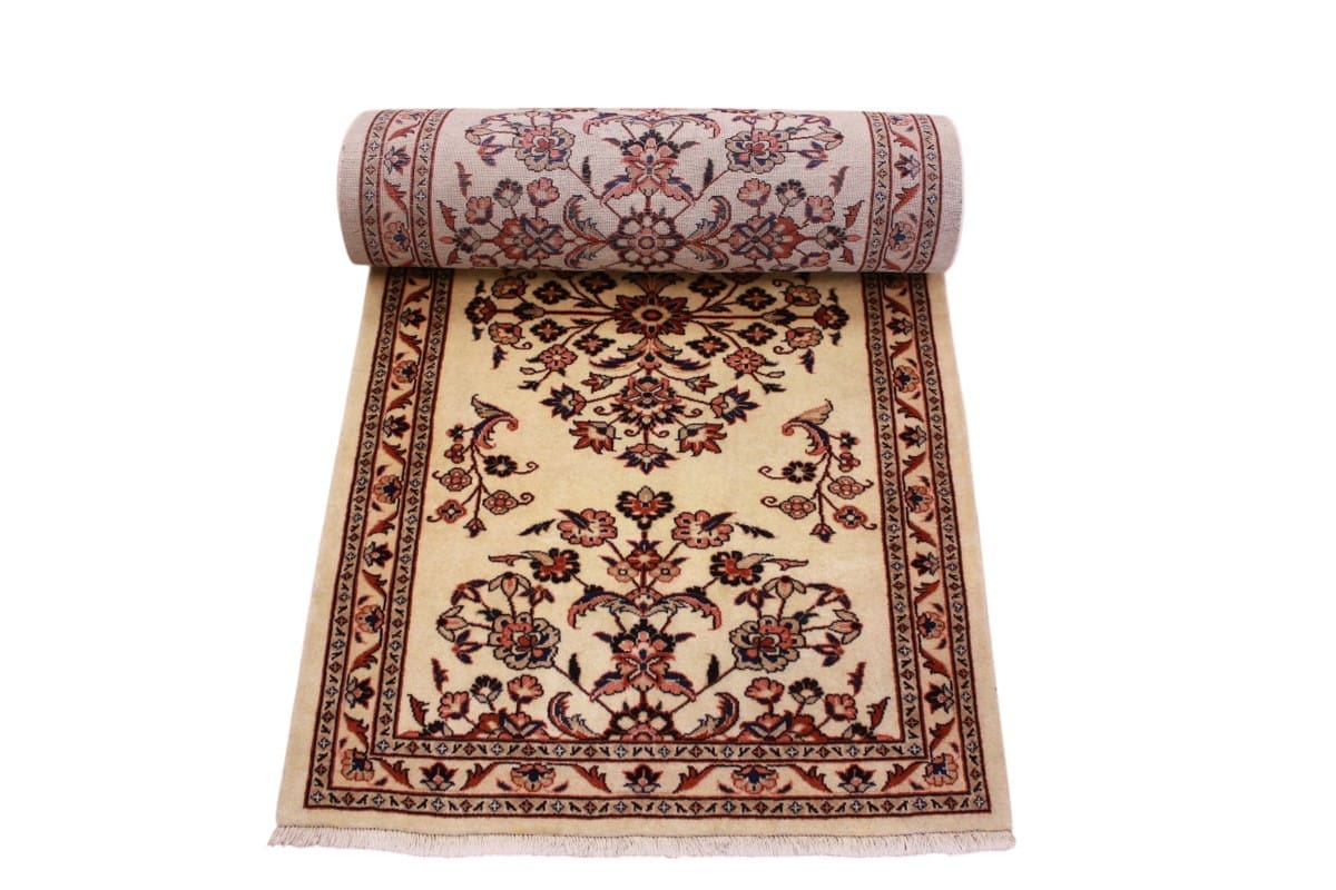 Die Designs der Sarough Teppiche sind oft geprägt von floralen und geometrischen Motiven, die in faszinierenden Farben gehalten sind. Der beige Grundton des Läufers schafft eine perfekte Grundlage, auf der sich die Muster nicht nur elegant einfügen, sondern auch lebendig wirken. Diese Teppiche sind in der Regel symmetrisch angeordnet, was ihnen eine harmonische Ausstrahlung verleiht.