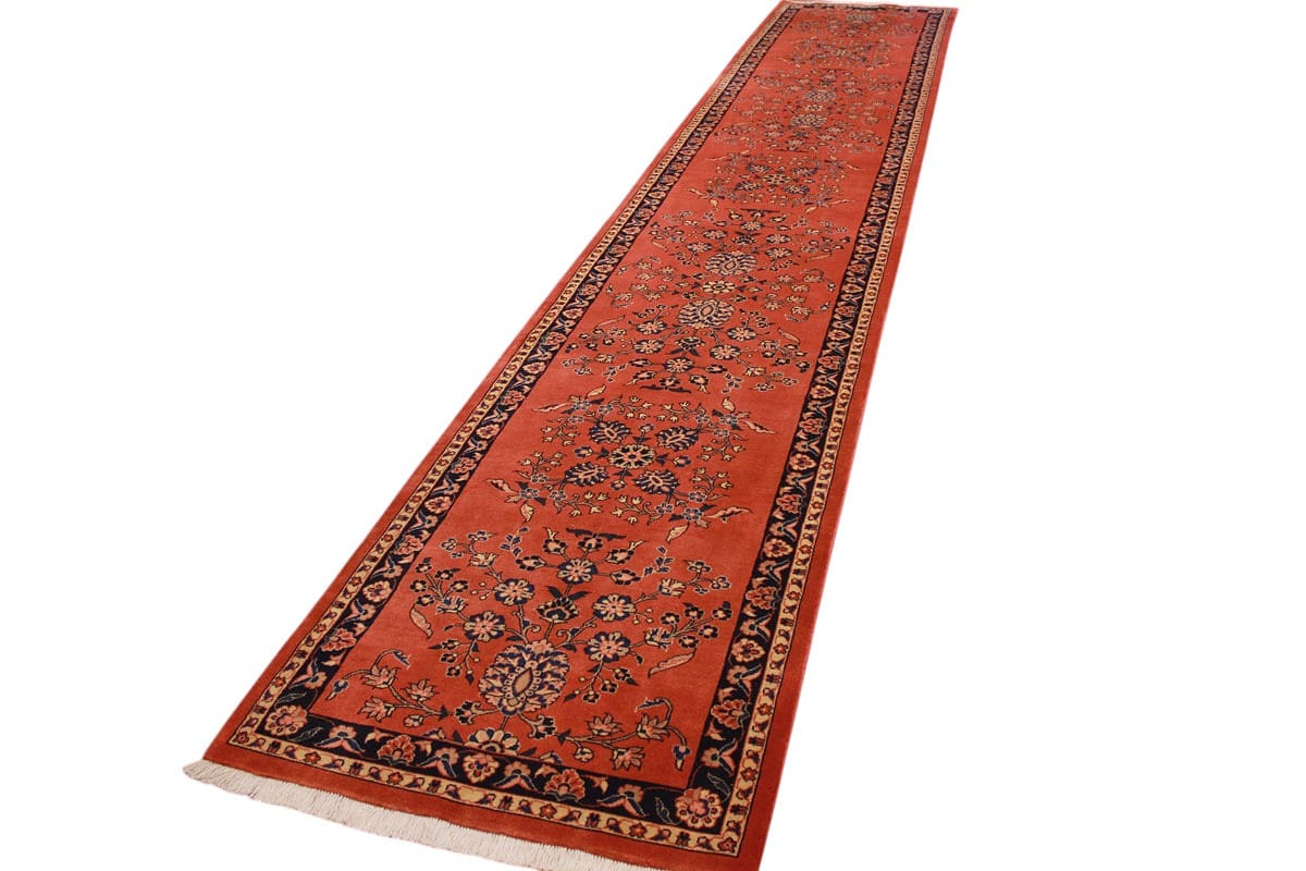 Perserteppich Sarough Rot 496×91 cm Läufer, handgeknüpft