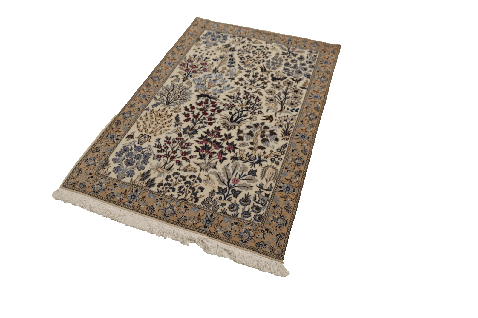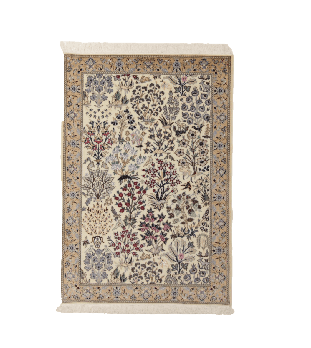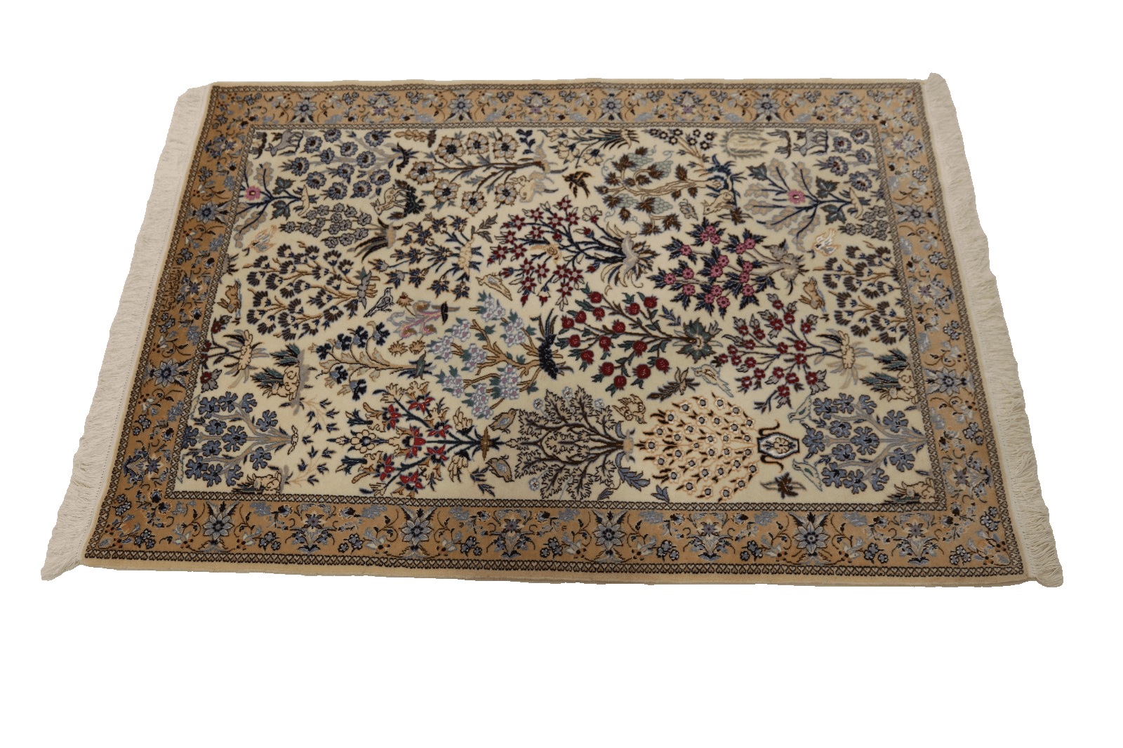 Orientteppich, handgeknüpft | Knotendichte: ca. 1.000.000 Knoten/m² | Material: 80 % Korkwolle, 20 % Naturseide | Größe: 149 x 101 cm | Herkunft: Persien | In sehr gutem Zustand | Luxuriöses Design mit orientalischem Muster