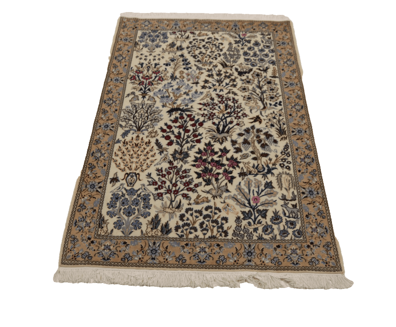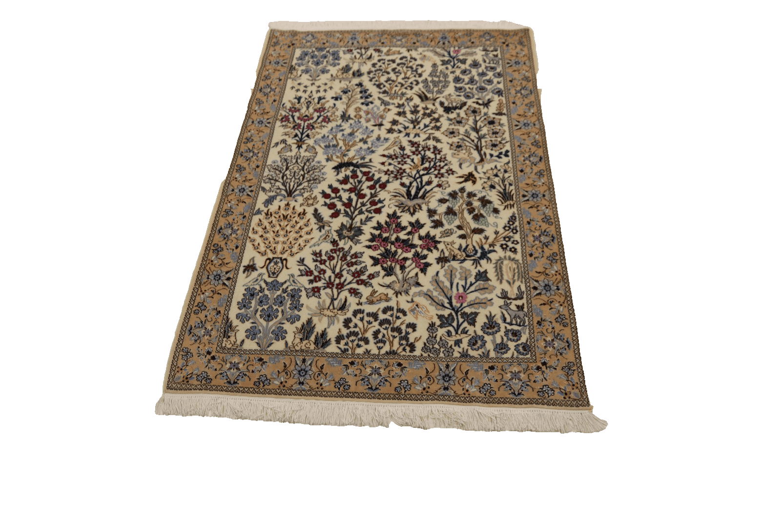 Der Teppich stammt aus der Region Nain, die für ihre lange Tradition in der Teppichknüpfkunst bekannt ist. Nain liegt im Herzen Iran und ist berühmt für die exquisite Handwerkskunst, die hier seit Generationen praktiziert wird. Teppiche aus Nain zeichnen sich durch ihre hohe Knotendichte aus, was bedeutet, dass sie besonders langlebig sind und feinste Details im Design bieten. Die Handwerksmeister von Nain verwenden oft traditionelle Muster und Techniken, um Teppiche herzustellen, die nicht nur funktional sind, sondern auch als Kunstwerke angesehen werden können.