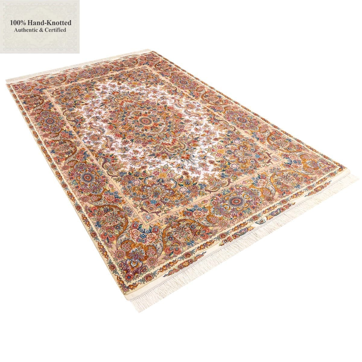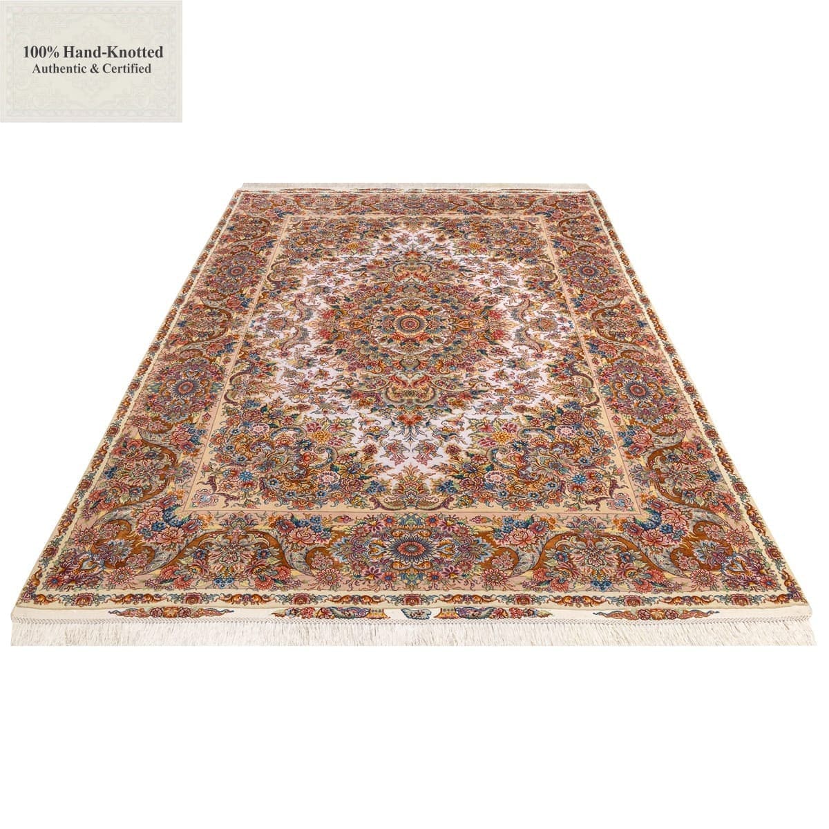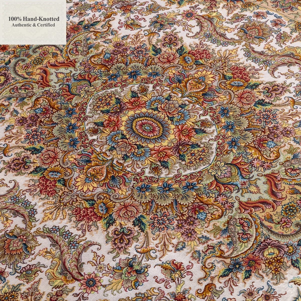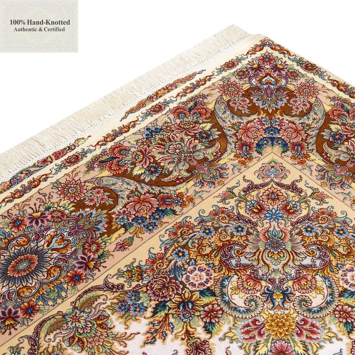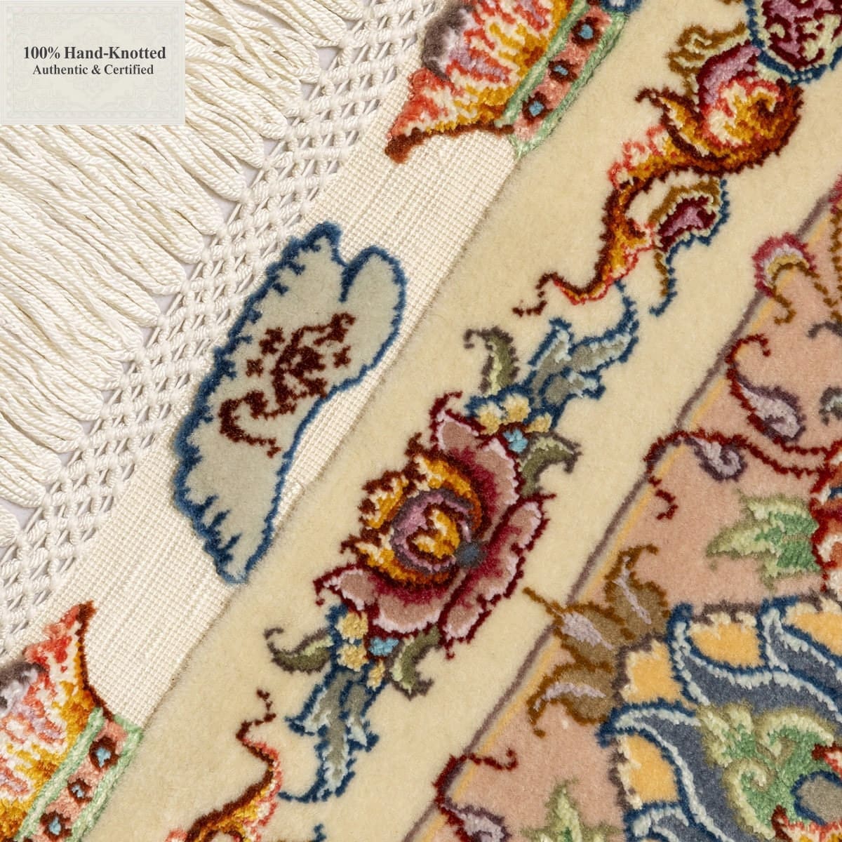 Handgeknüpfter Tabriz Orientteppich | Knotendichte: 900.000 / m² | Material: Flor: Seide, Kette: Baumwolle | Größe: 300 x 200 cm | Herkunft: Tabriz | Farbe: creme | Hinweis: Bei Unikaten bitte vor Bestellung die Verfügbarkeit prüfen