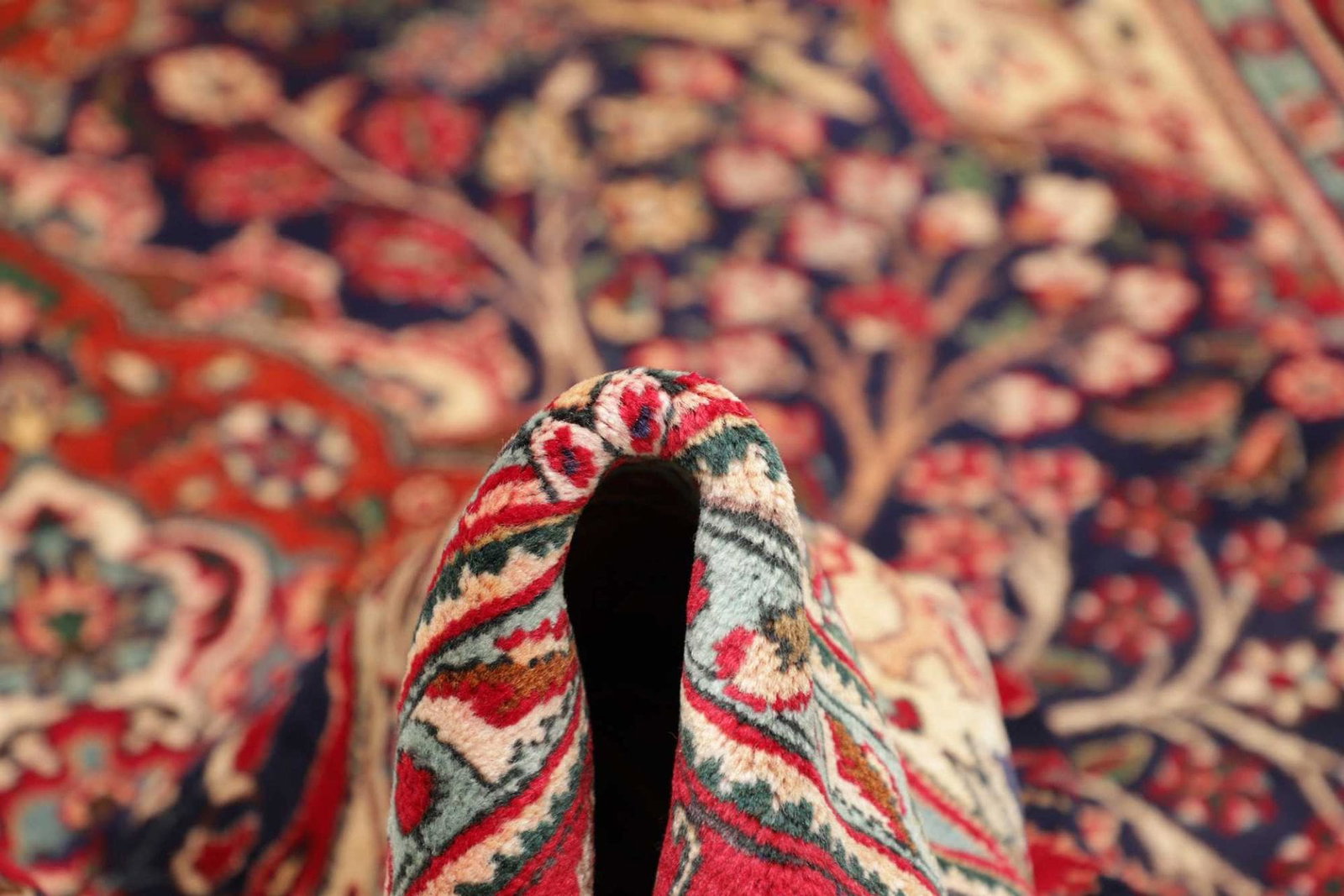 Besondere Merkmale dieses Perserteppichs sind nicht nur die hohe Knotendichte und die exquisite Verarbeitung, sondern auch die Strapazierfähigkeit der verwendeten Materialien. Schurwolle hat eine natürliche Schmutzabweisende Eigenschaft, wodurch der Teppich leicht zu reinigen und pflegeleicht ist. Zudem sorgt die natürliche Elastizität der Wolle dafür, dass der Teppich auch bei starker Beanspruchung seine Form und Pracht behält. Das handgeknüpfte Design verleiht dem Teppich zudem eine gewisse Tiefe und Textur, die in einem maschinell hergestellten Teppich nur schwer zu erreichen ist.