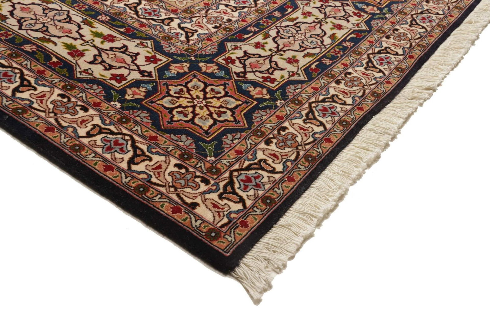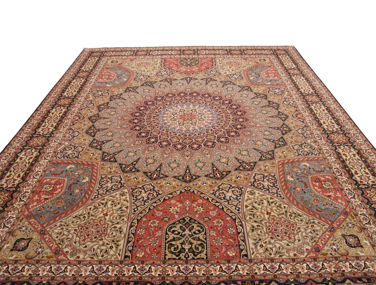 Täbriz Teppiche zeichnen sich durch komplexe florale und geometrische Muster aus, die oft eine tiefere kulturelle Bedeutung haben und die Kunstfertigkeit der Knüpfer widerspiegeln.