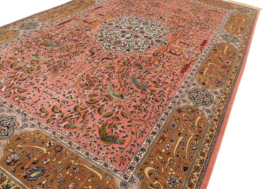 Die Knotendichte des Tabriz Teppichs beträgt ca. 640 000 Knoten pro Quadratmeter, was die hohe Qualität und Kunstfertigkeit des Handwerks belegt.