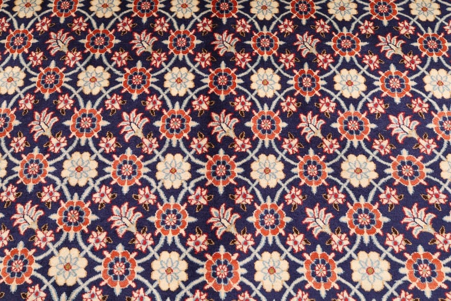 Der Varamin Teppich ist mit dem ikonischen Mina Khani Muster gestaltet, das durch seine symmetrische Anordnung und die Kombination von Blau- und Türkistönen besticht. Dieses Muster ist charakteristisch für die Teppiche aus der Varamin/Kashmar Region und zeigt florale Elemente, die in einem harmonischen Zusammenspiel angeordnet sind. Die Farben sind lebendig und verleihen dem Raum eine besondere Atmosphäre. Die harmonische Verbindung von Farben und das komplexe Muster machen den Teppich zu einem Blickfang in jeder Einrichtung.