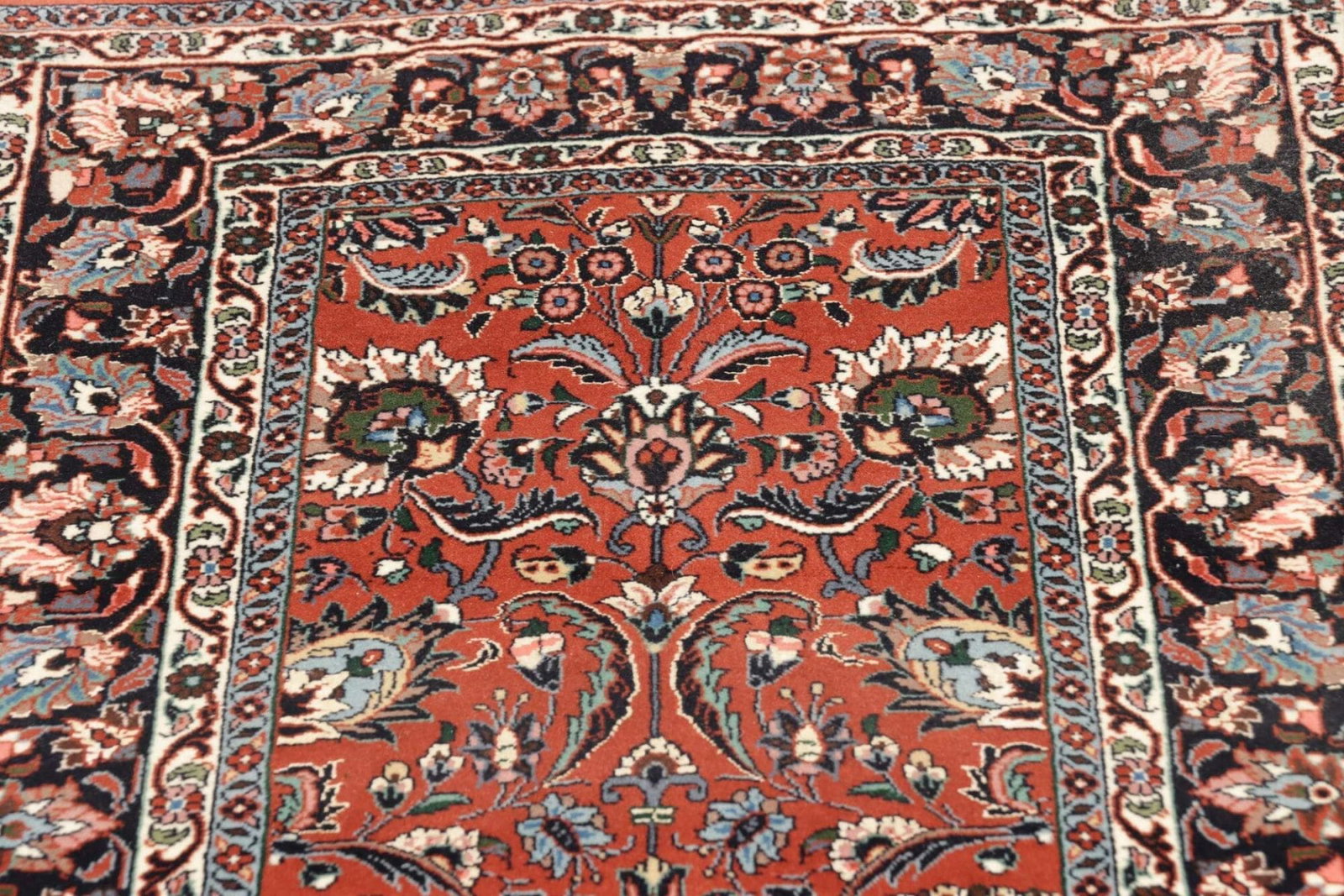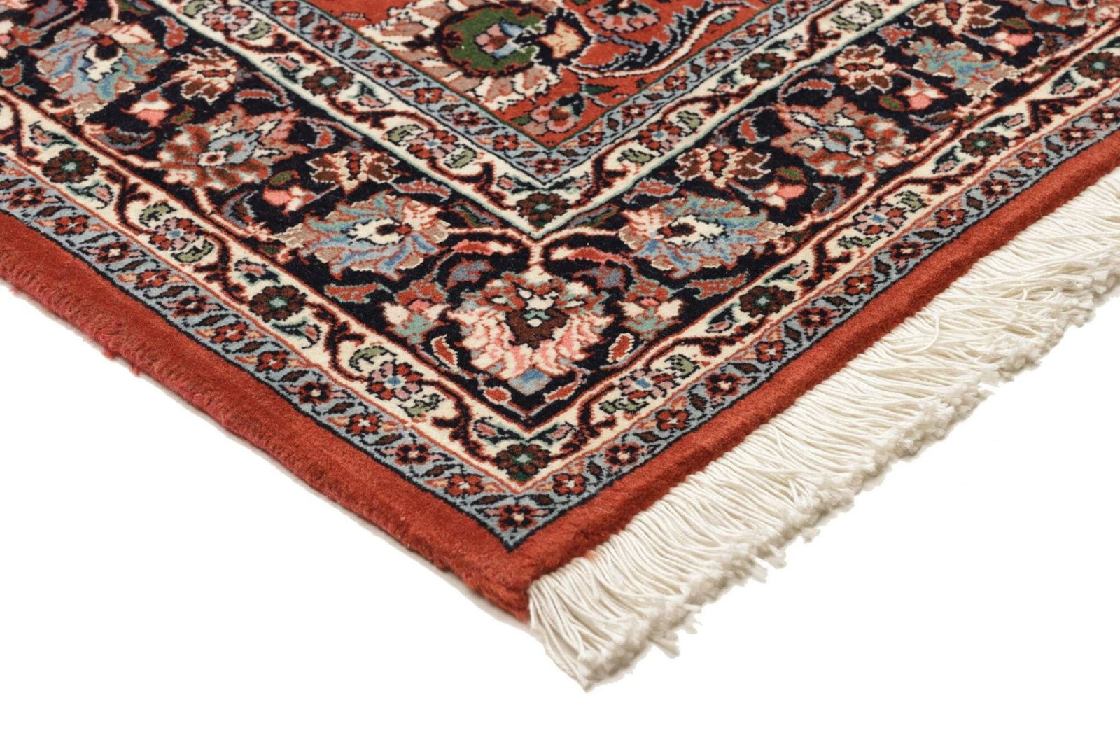 Dieser speziell handgeknüpfte Teppich aus Bidjar weist charakteristische Muster auf, die sowohl traditionell als auch zeitlos sind. Oft sind florale Motive und witterungsgeprüfte geometrische Designs miteinander verwoben, die die Bewunderung für die Natur und die Kunstfertigkeit der Teppichweber widerspiegeln. Jedes Stück ist ein Unikat und erzählt seine eigene Geschichte durch die Kombination aus verschiedenen Farben und Mustern. Typische Farben, die in Bidjar-Teppichen verwendet werden, sind reiche Rottöne, tiefes Blau und sanfte Erdtöne, die harmonisch aufeinander abgestimmt sind.